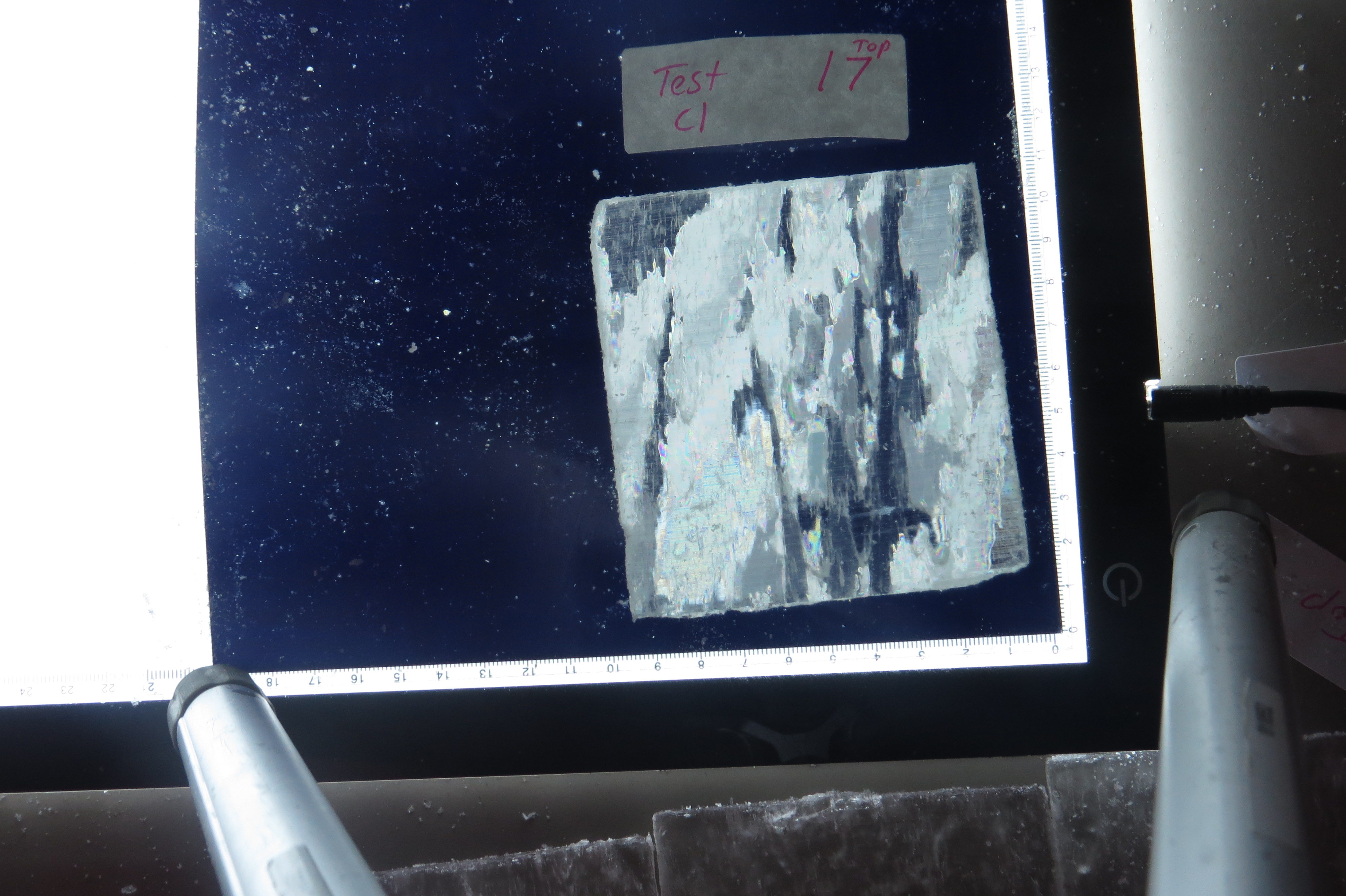 Jennifer Bault: "Another thin section at 170 cm down from the top of the ice. Note the changes in the crystal pattern. We are starting to see more platelet ice in this section." McMurdo Station, Antarctica.