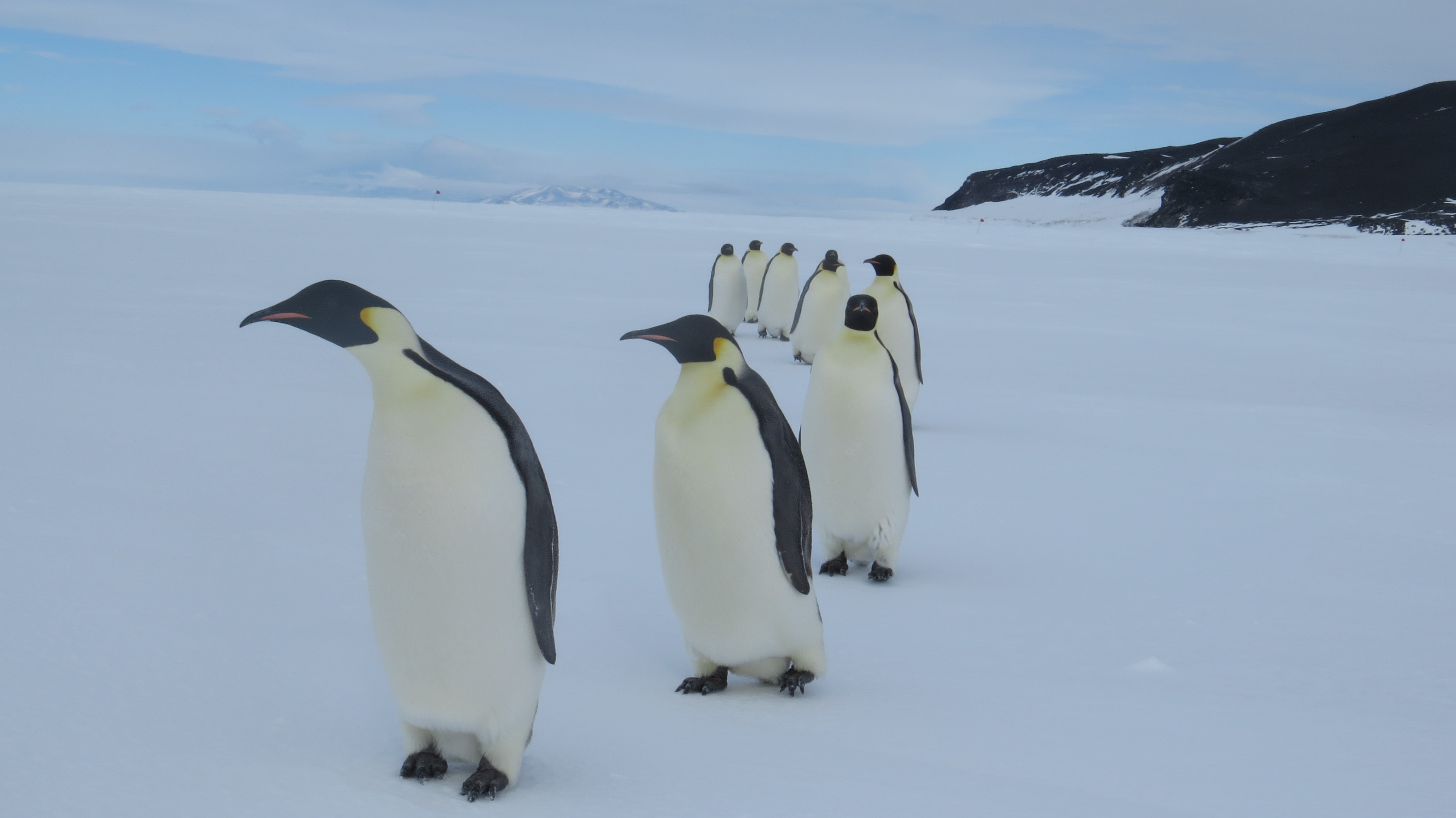 Emperor penguins on the sea ice of the Ross Sea, Antarctica. Jennifer Bault: "They lined up like this all on their own! They might be better behaved than students!"