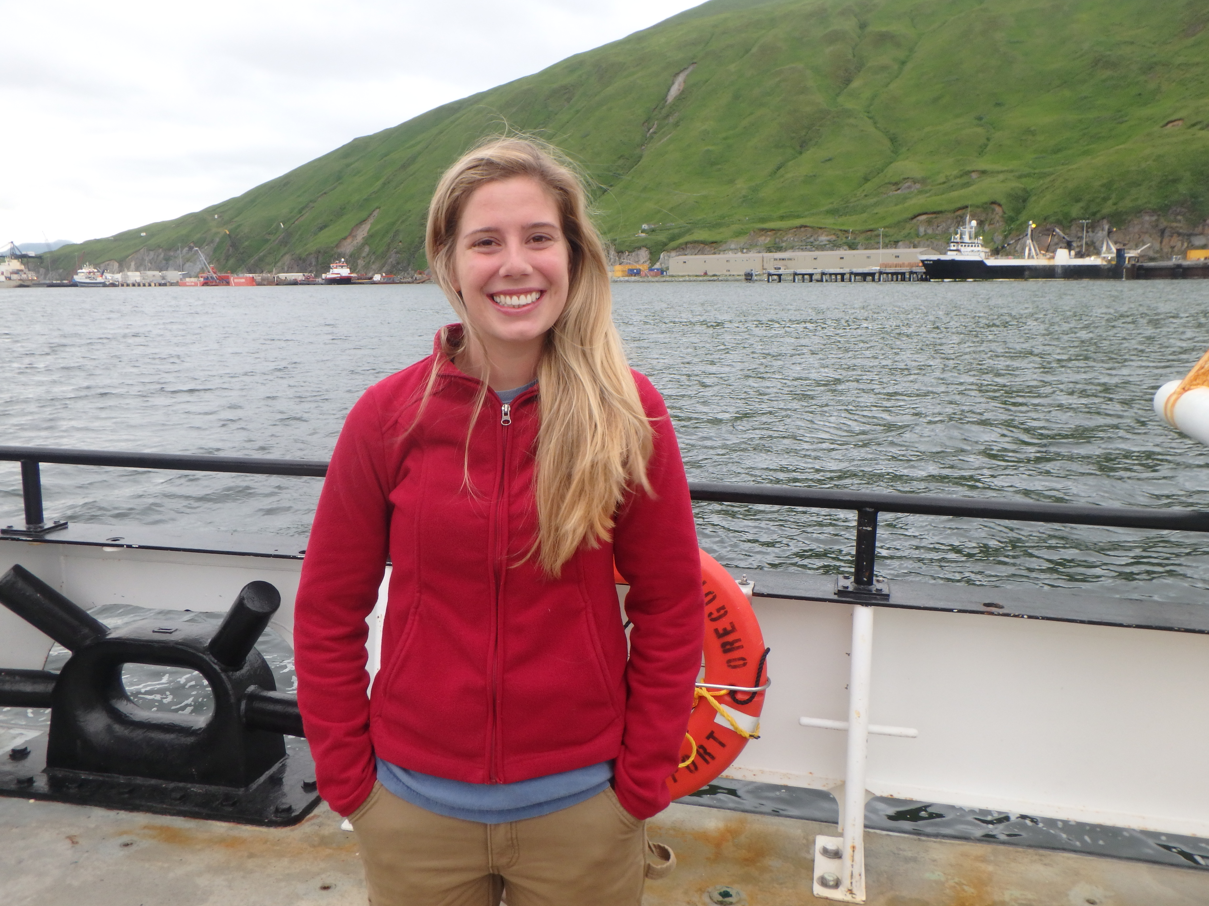 Jami Ivory, Marine Scientist, aboard the R/V Oceanus in the Eastern Bering Sea.