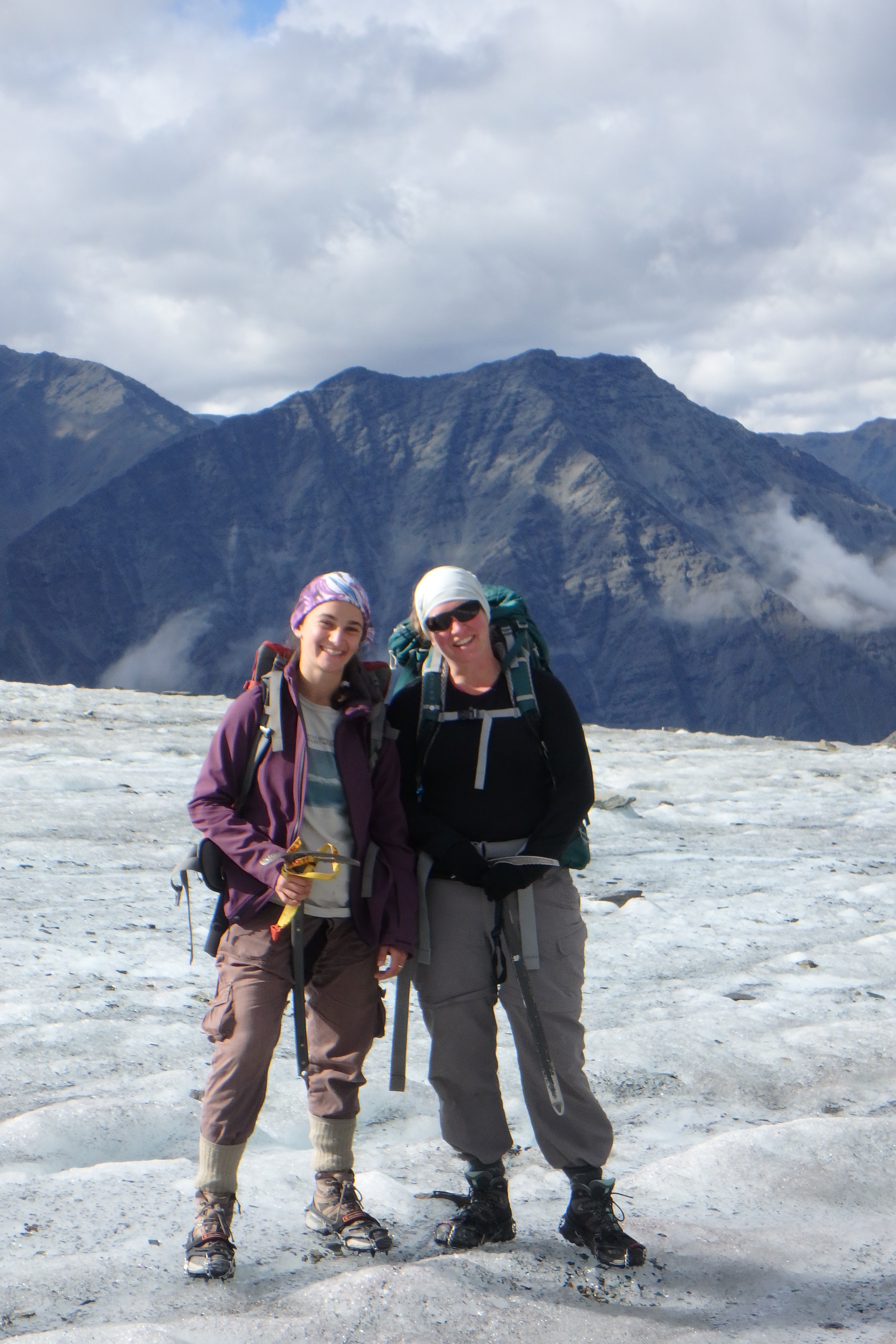 Ellie Broadman and Rebecca Harris on Chamberlin Glacier. Brooks Range, Arctic National Wildlife Refuge, Alaska.