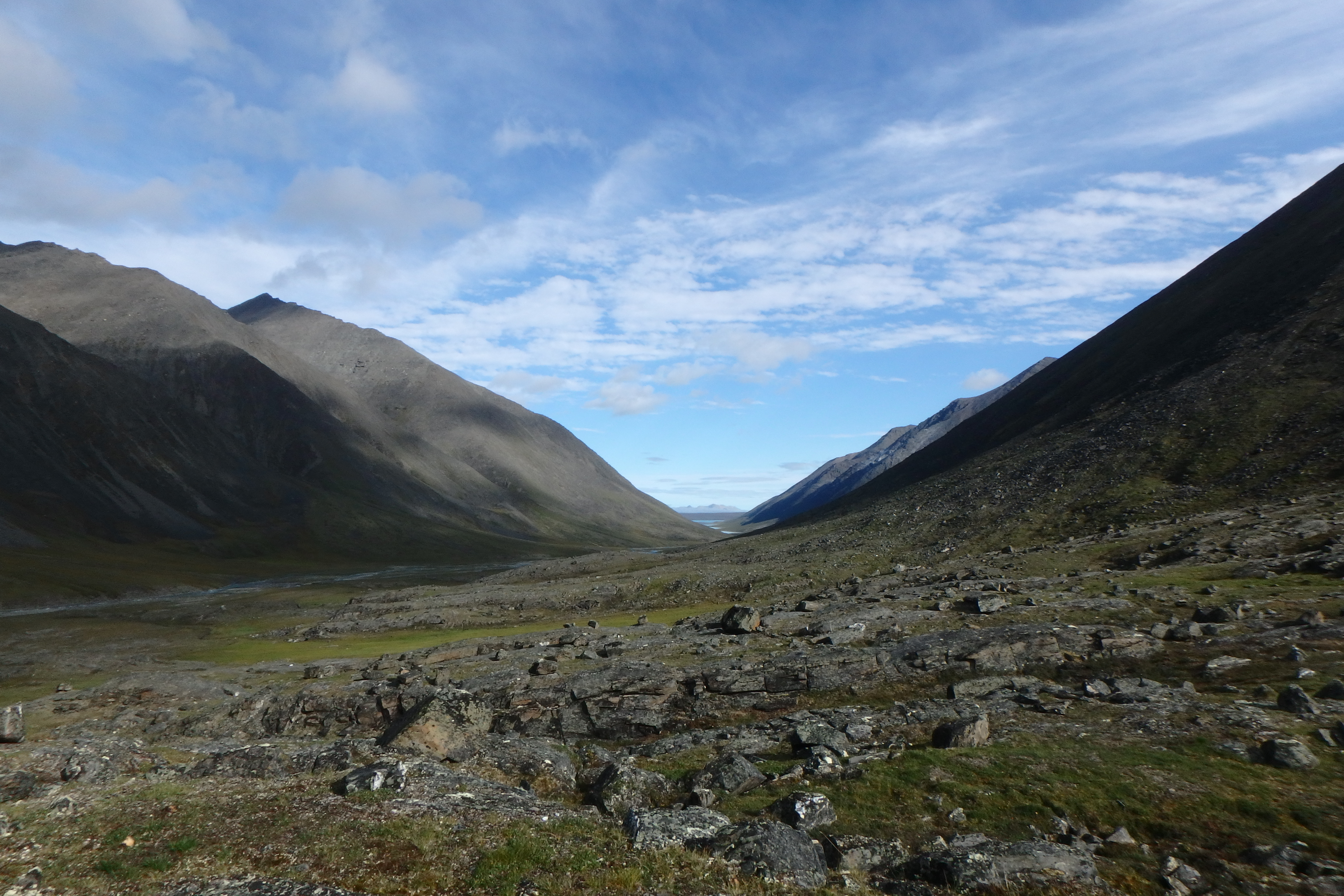 A view looking down Carnivore Creek to Lake Peters. Arctic National Wildlife Refuge, Alaska.