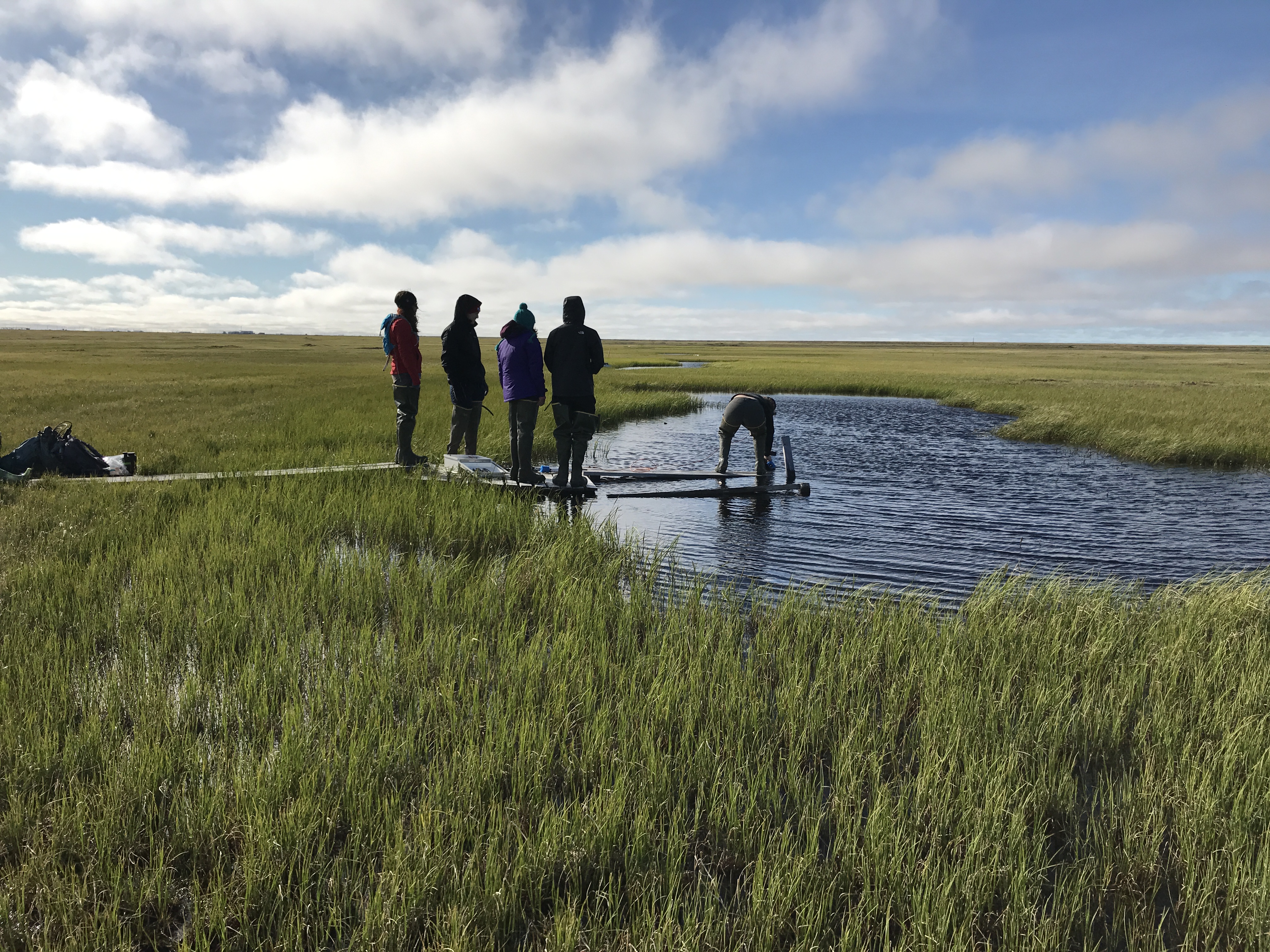 The aquatic ecology team, including Dr. Vanessa Lougheed, at the sampling site. Utqiagvik, Alaska.
