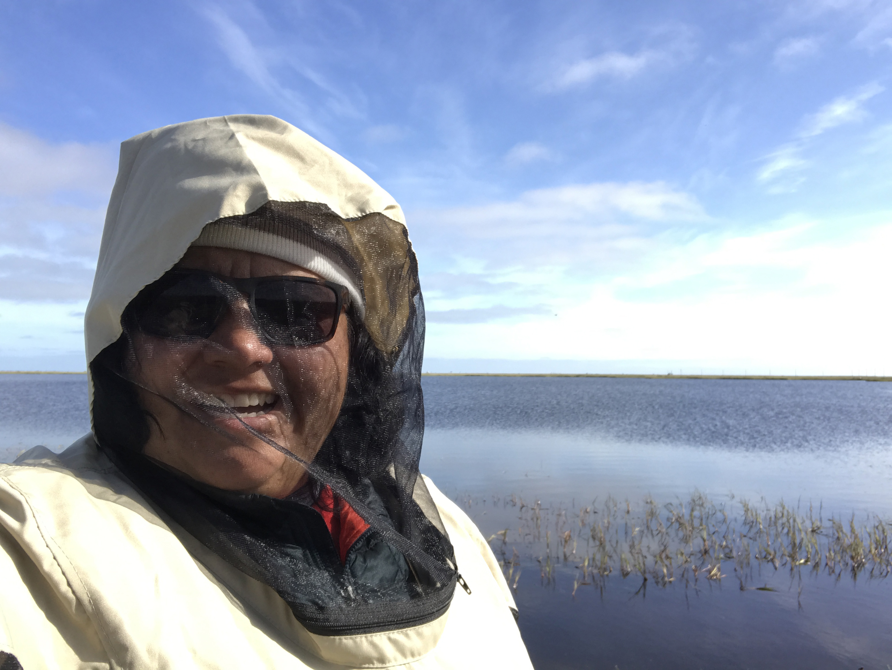 Ruth Rodriguez at Cake Eater Lake in her bug shirt. Utqiagvik, Alaska.
