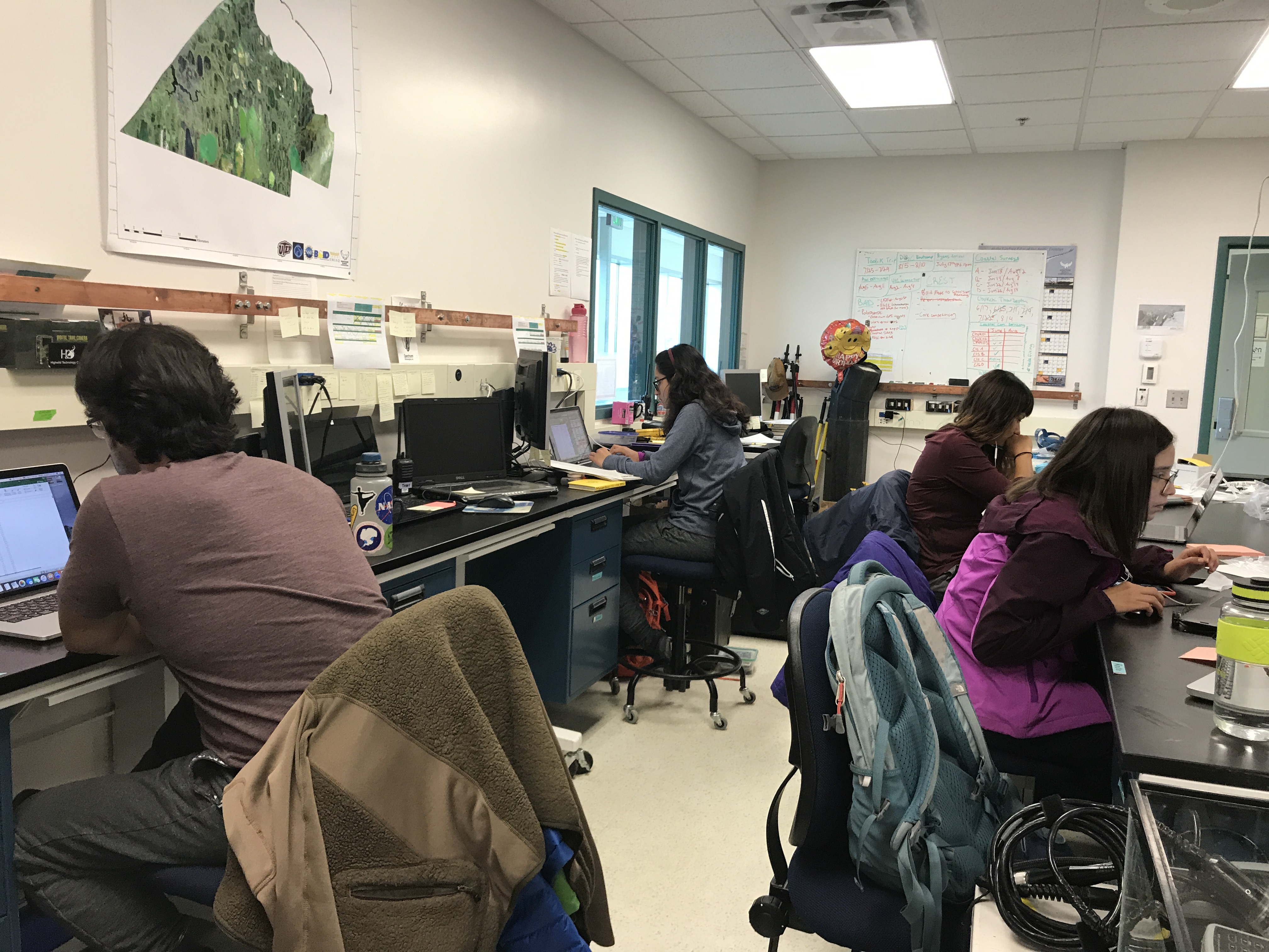 The University of Texas at El Paso (UTEP) team works on their newly collected data. Barrow Arctic Research Center (BARC) in Utqiagvik, Alaska.
