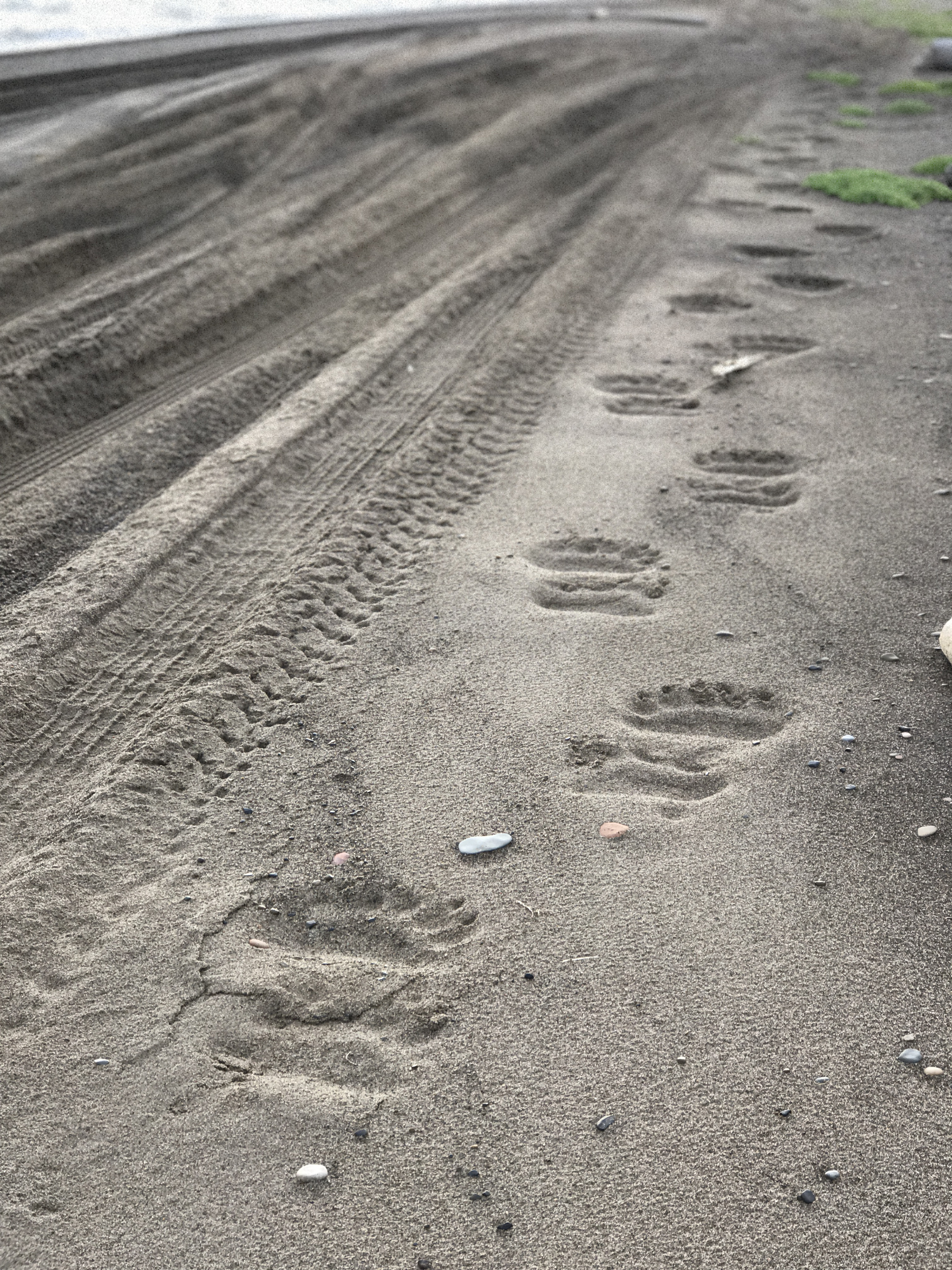 Polar bear tracks on the beach in Utqiagvik, Alaska.