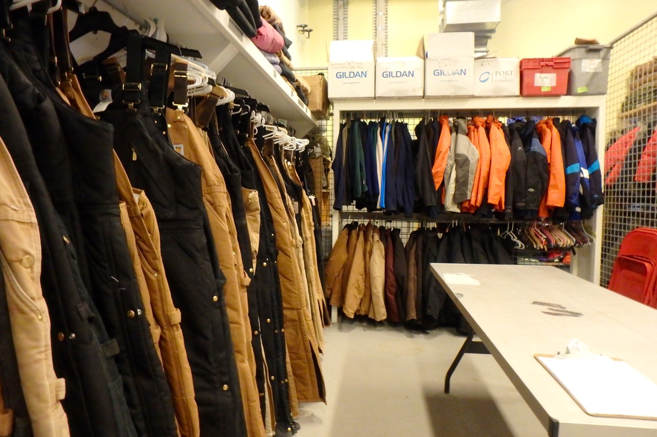 The Polarfield warehouse provides extreme cold weather gear for supported workers and researchers heading into the field. Kangerlussuaq, Greenland.