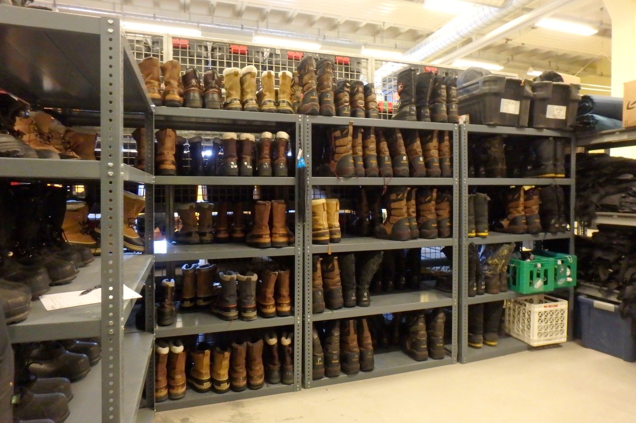 The Polarfield warehouse provides extreme cold weather gear for supported workers and researchers heading into the field. Kangerlussuaq, Greenland.
