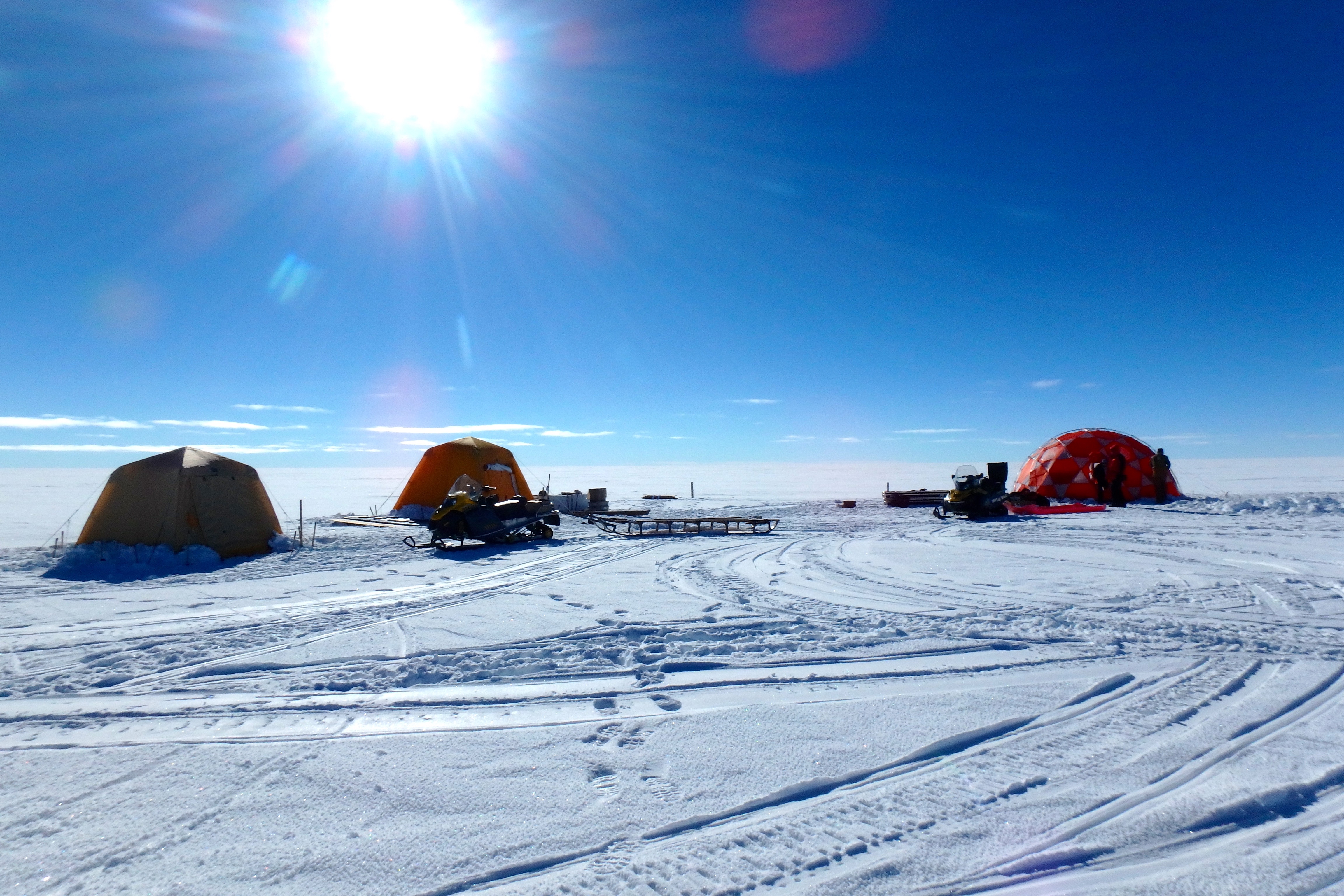 After a day of work, the drilling site is completely set up. Near Summit Station, Greenland.