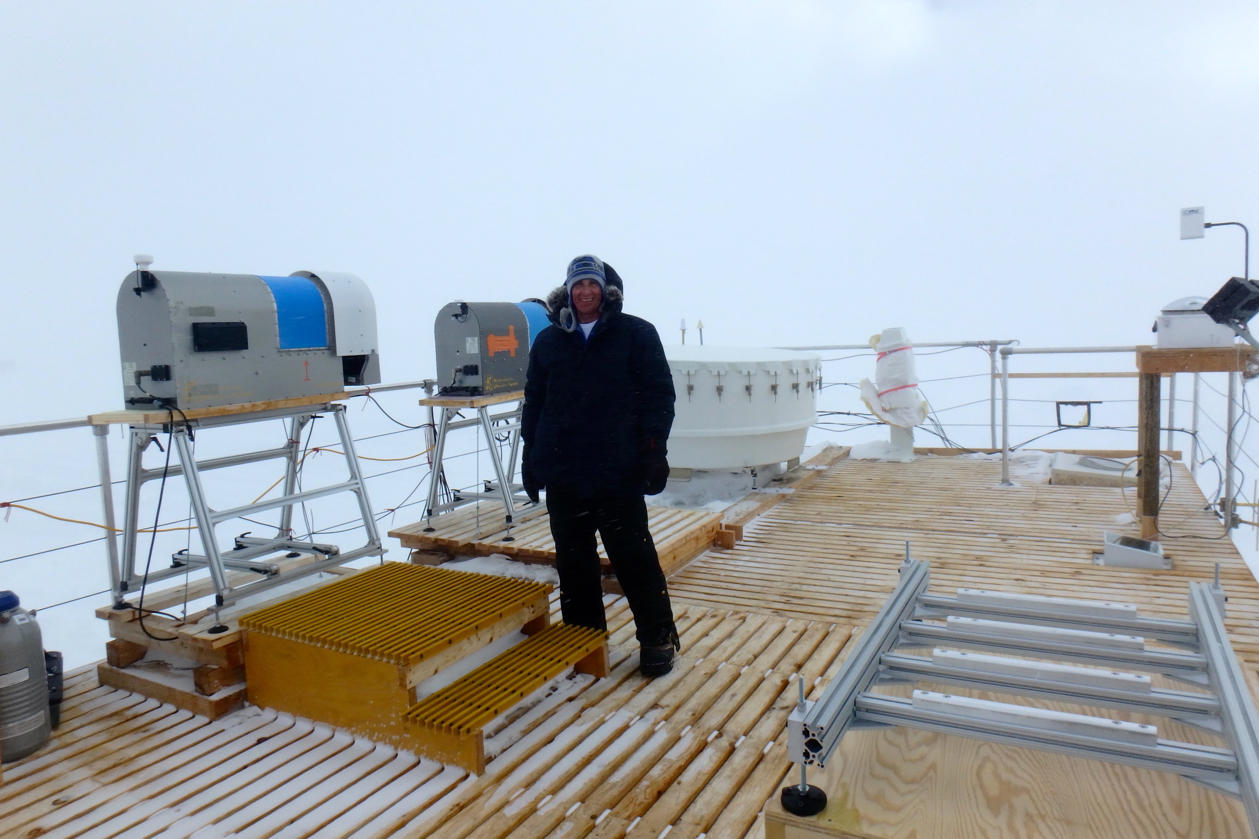 Steve Kirsche on top of the Mobile Science Facility at Summit Station, Greenland.