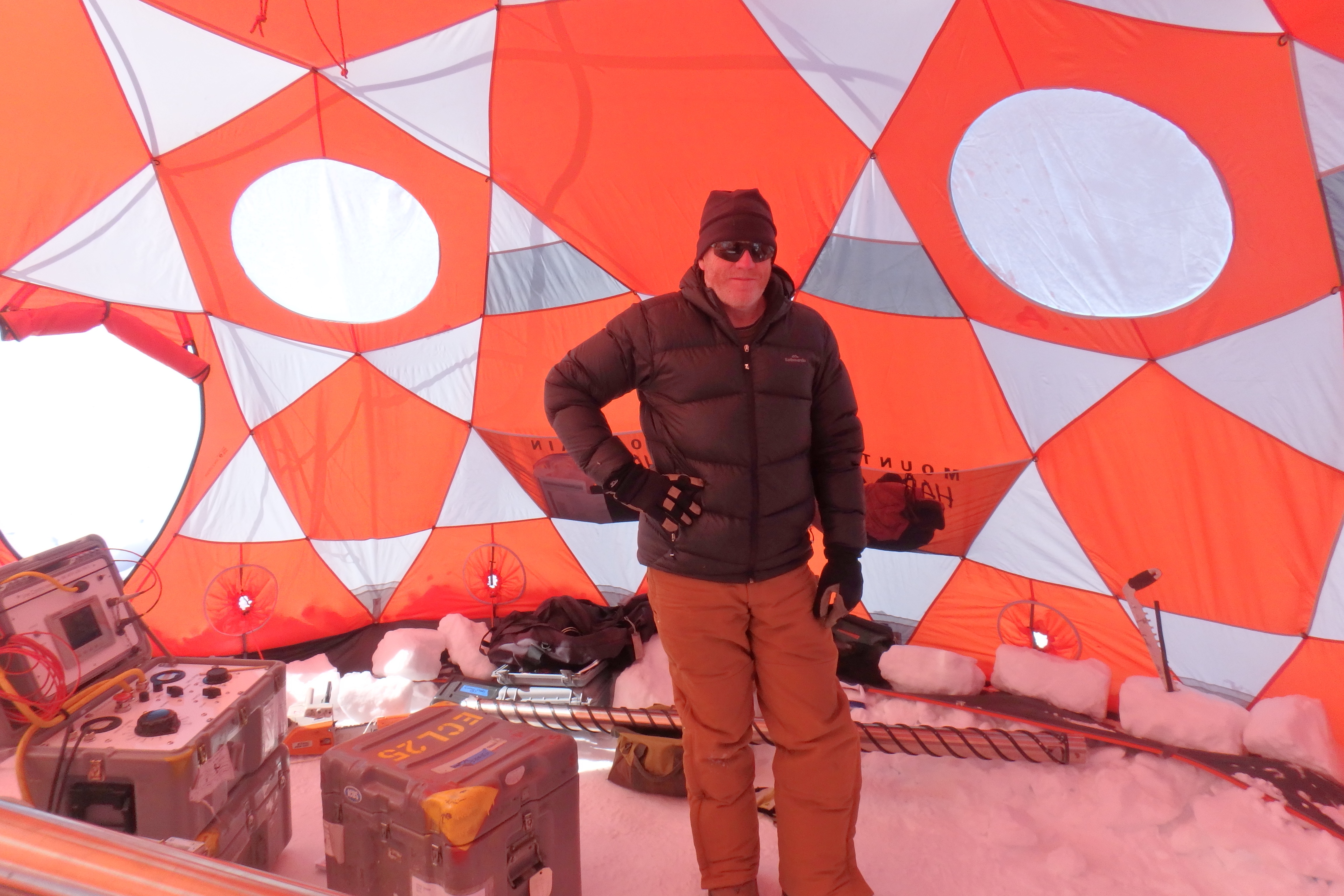 Mike Jayred is one of the professional drillers who worked the drill for the research team. Near Summit Station, Greenland.