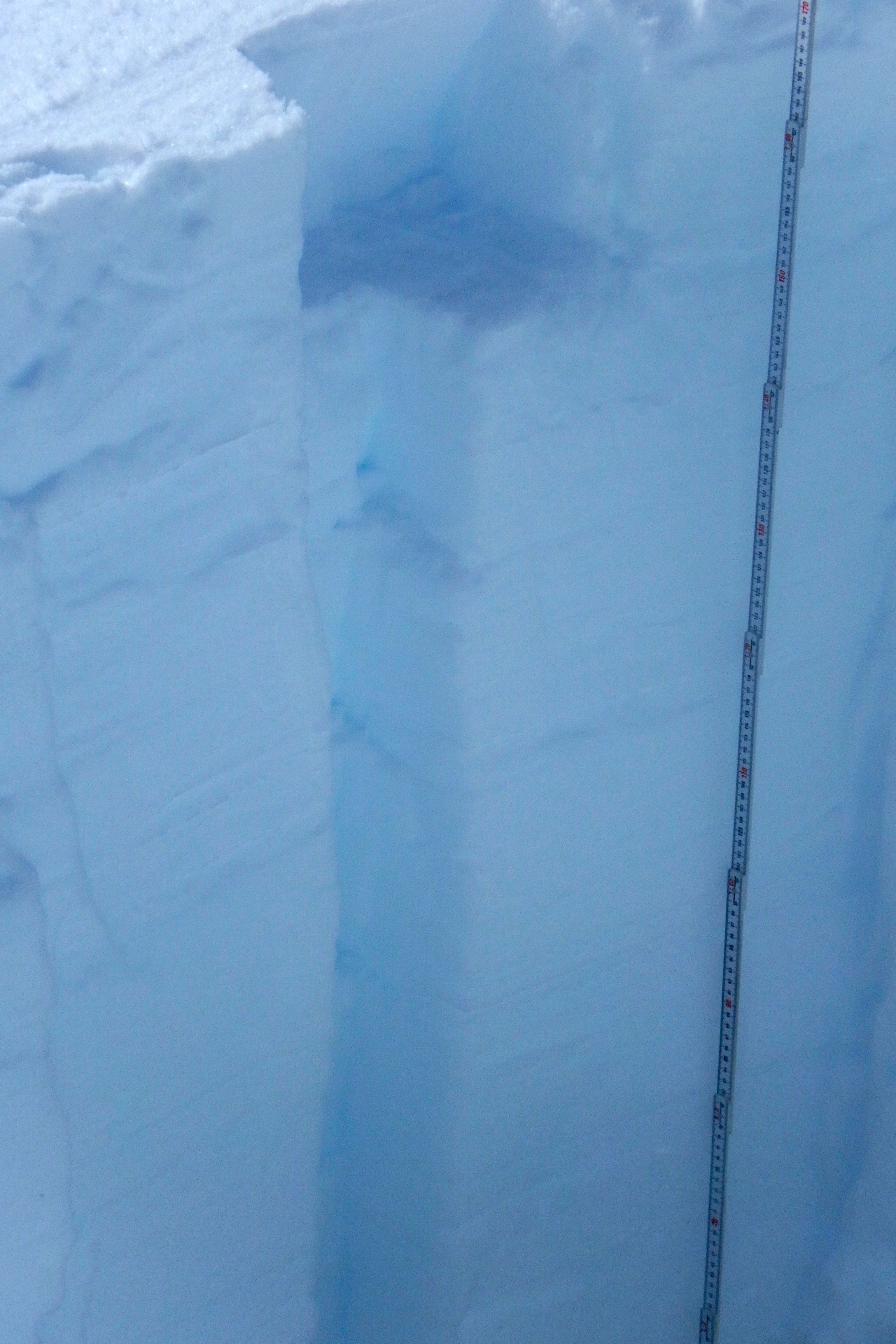 This groove is the portion of the snow pit's wall that was cut out to take samples of the firn. Near Summit Station, Greenland.