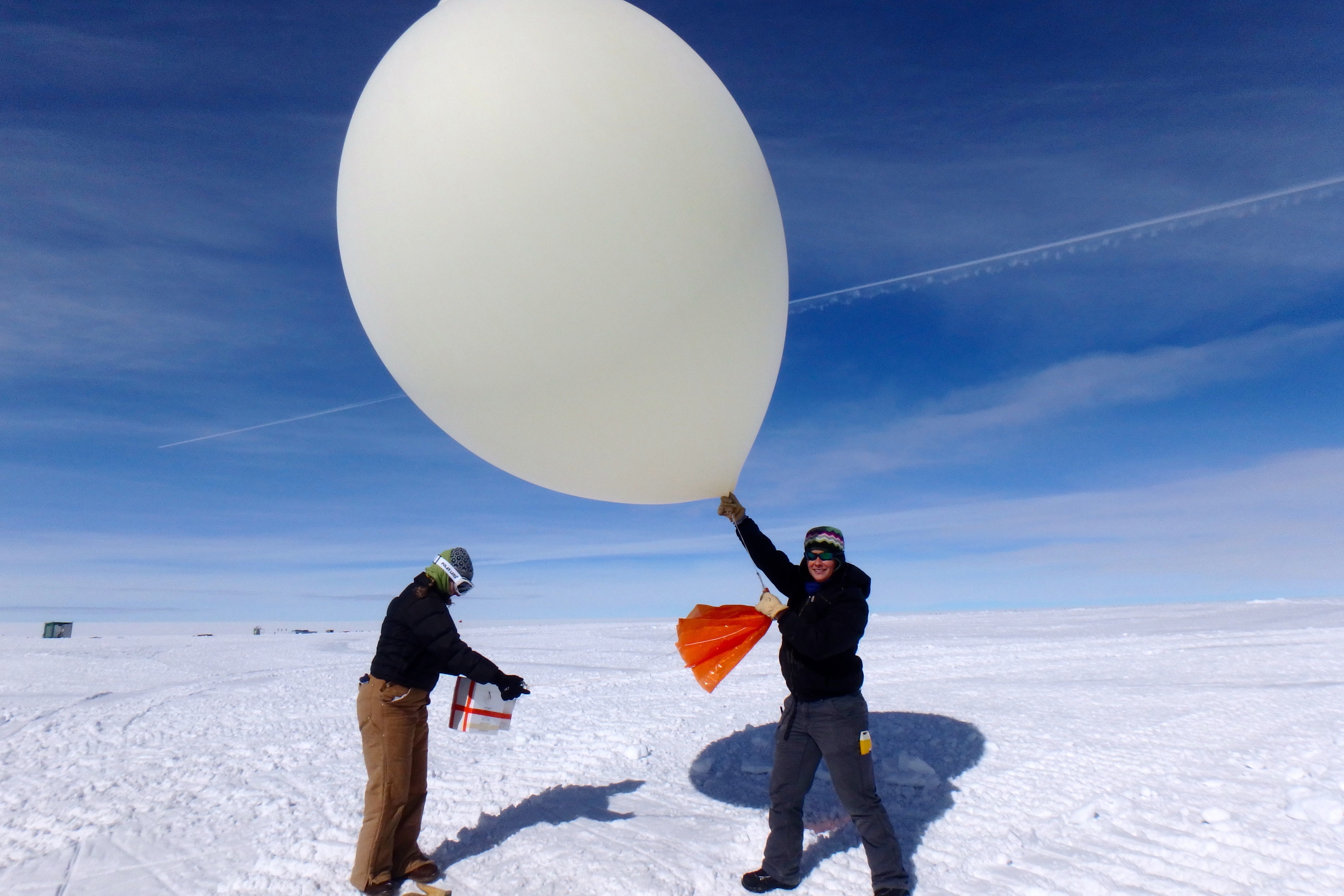 Science technicians from Summit Station, Greenland launch a balloon with an ozonesonde attached, to measure the ozone in the atmosphere.