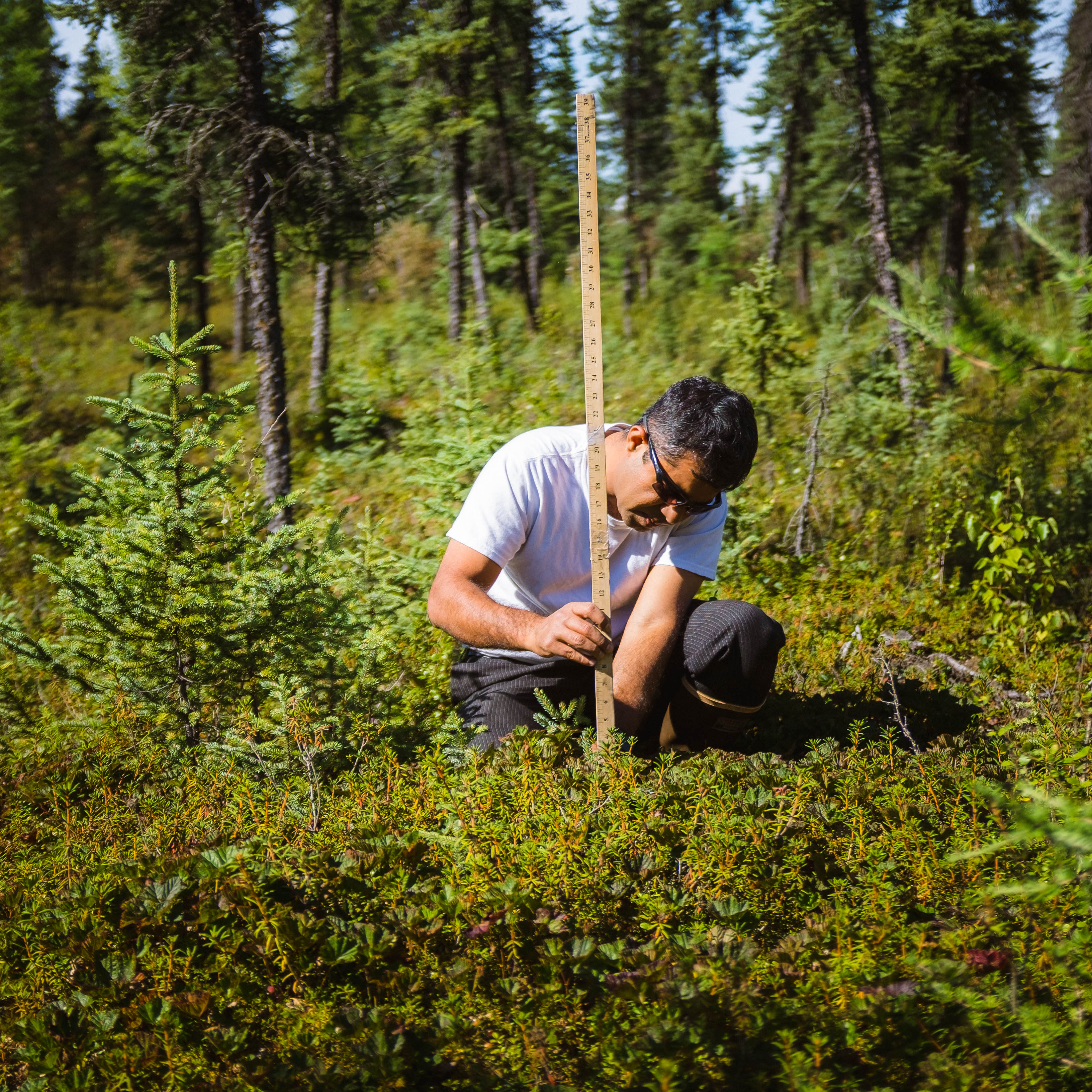Santosh Panda measures permafrost depth. Nikolai, Alaska.