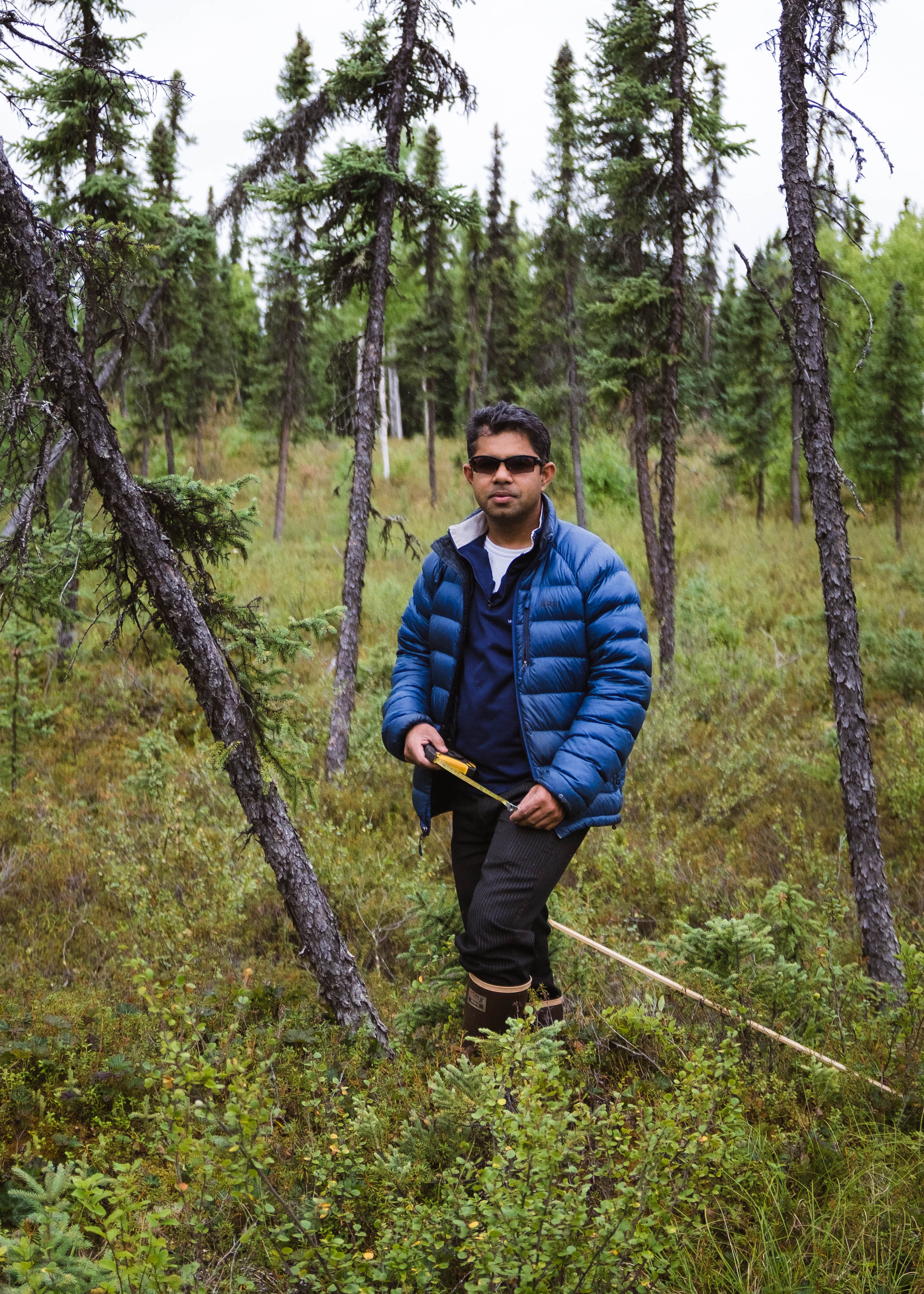 Santosh Panda stands near one of the permafrost monitoring stations. Nikolai, Alaska.