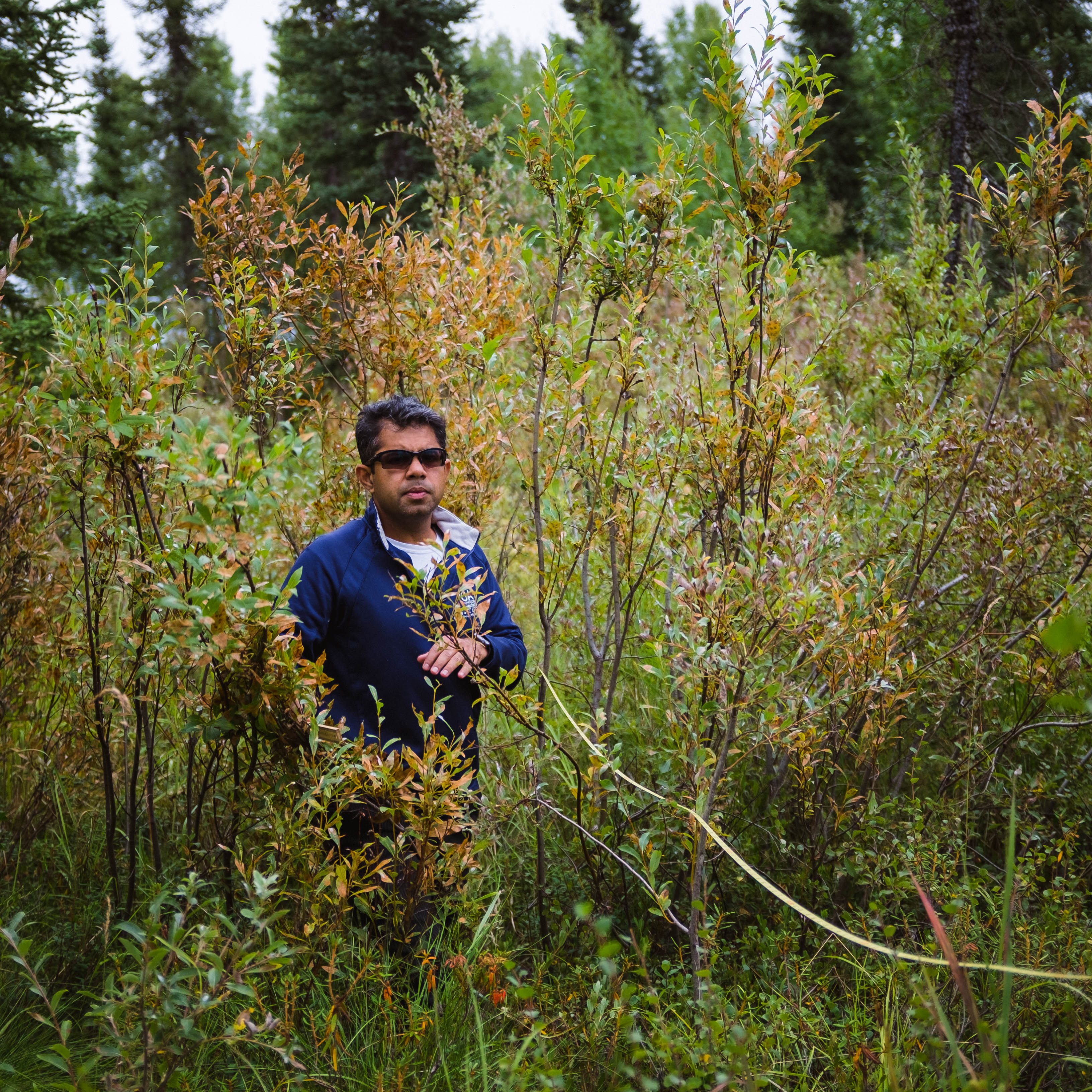 Allyson Woodard: "Santosh Panda looks serene here, but two seconds later he stepped on a wasp nest." Nikolai, Alaska.