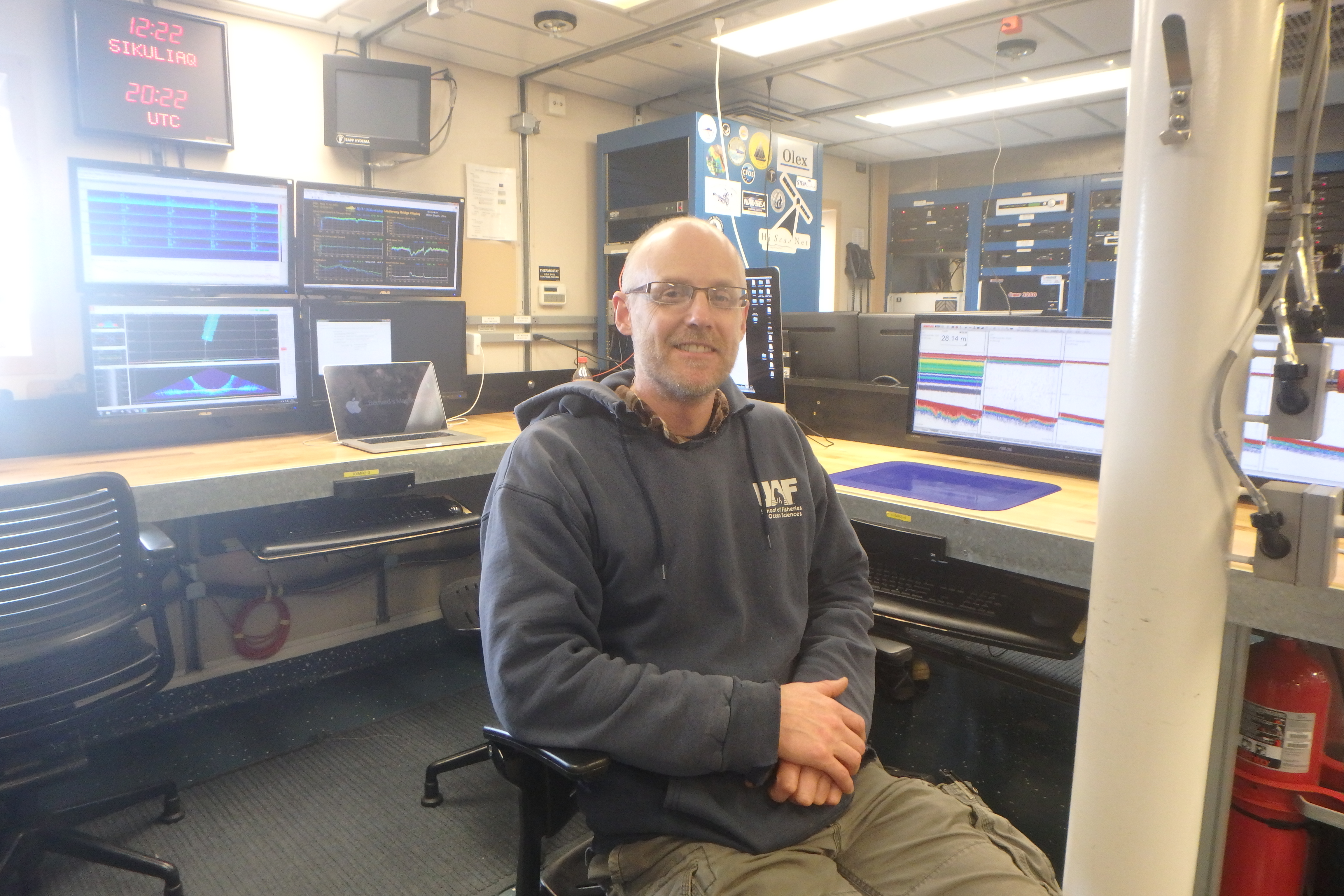 Dan Nador, Marine Science Technician, aboard the R/V Sikuliaq in the Bering Sea.