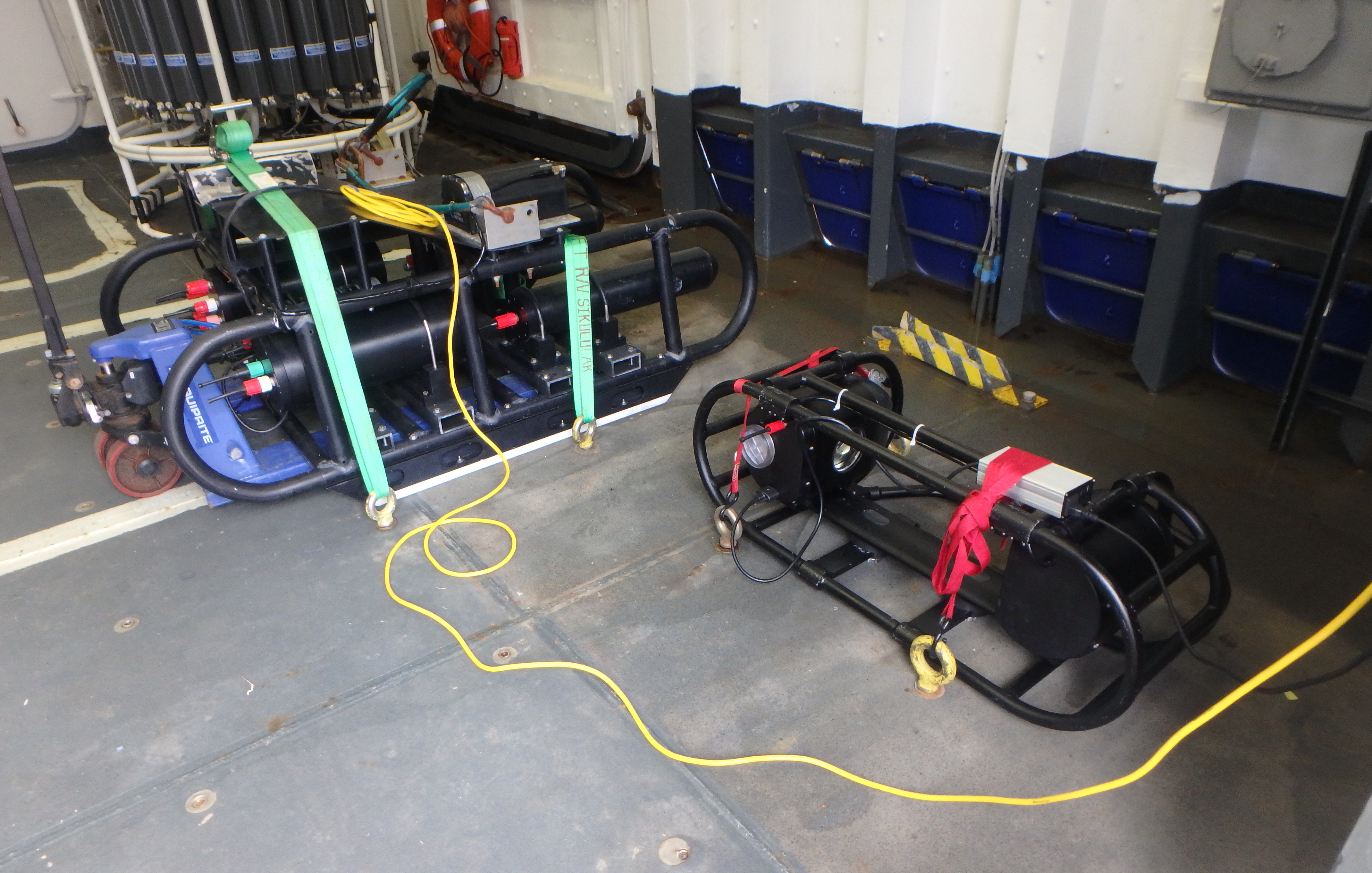 The Arcis (left) and the planktonscope (right). Aboard the R/V Sikuliaq in the Bering Sea.