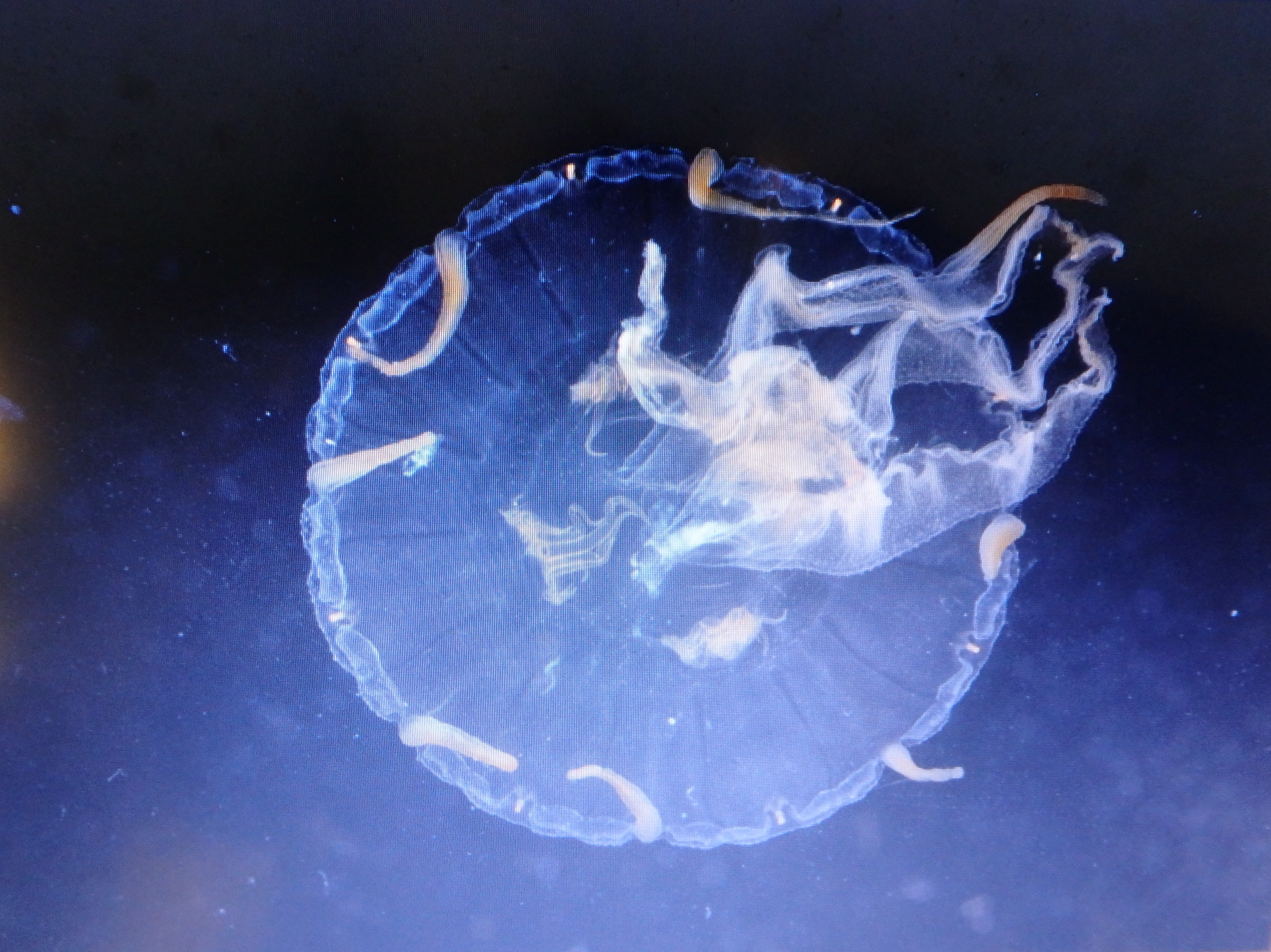 A jellyfish specimen under a microscope that was caught from a net trawl. Aboard the R/V Sikuliaq in the Bering Sea.