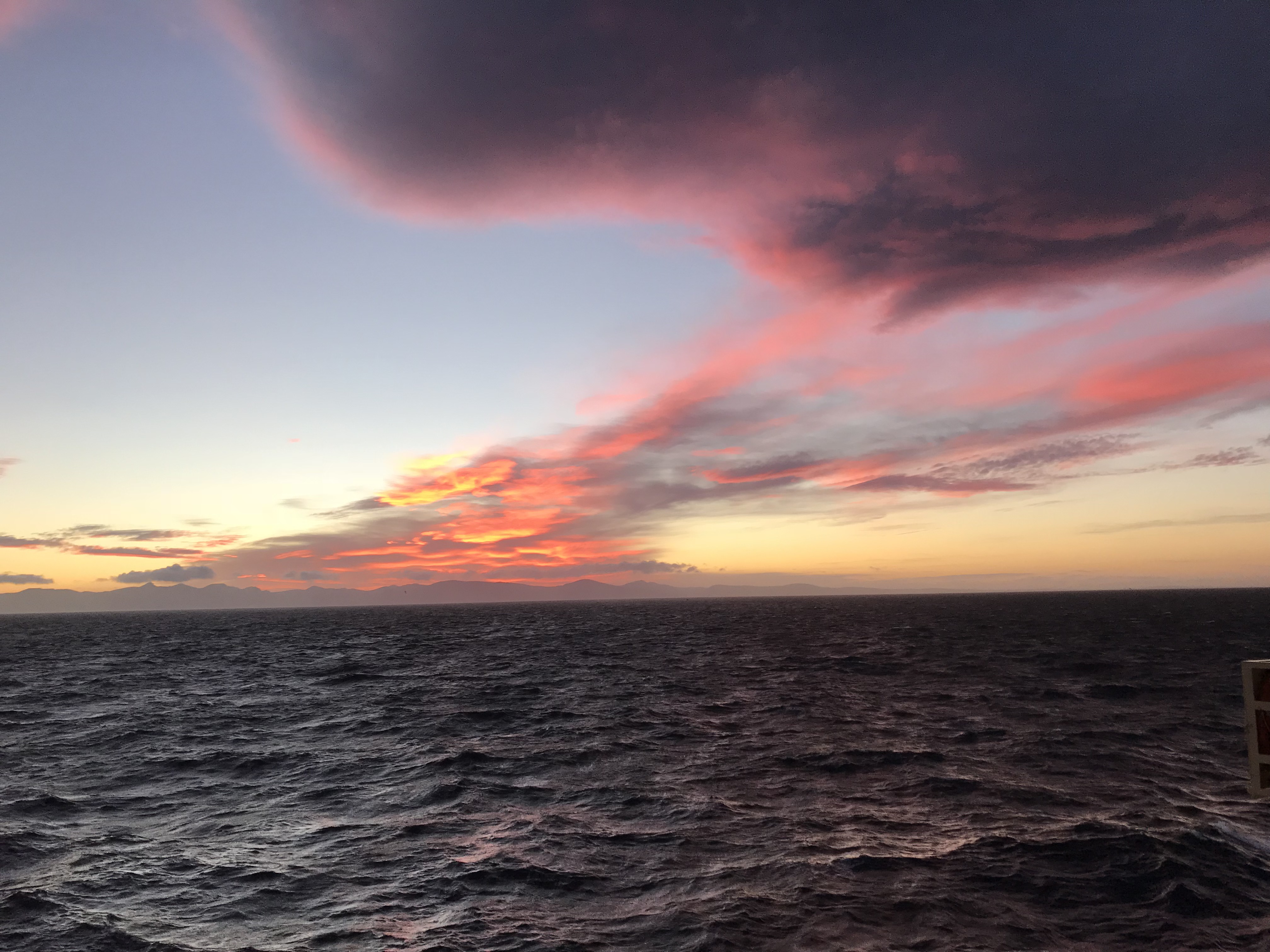 A view of the sunset on May 25, 2018 aboard the RV Laurence M. Gould in the Southern Ocean.