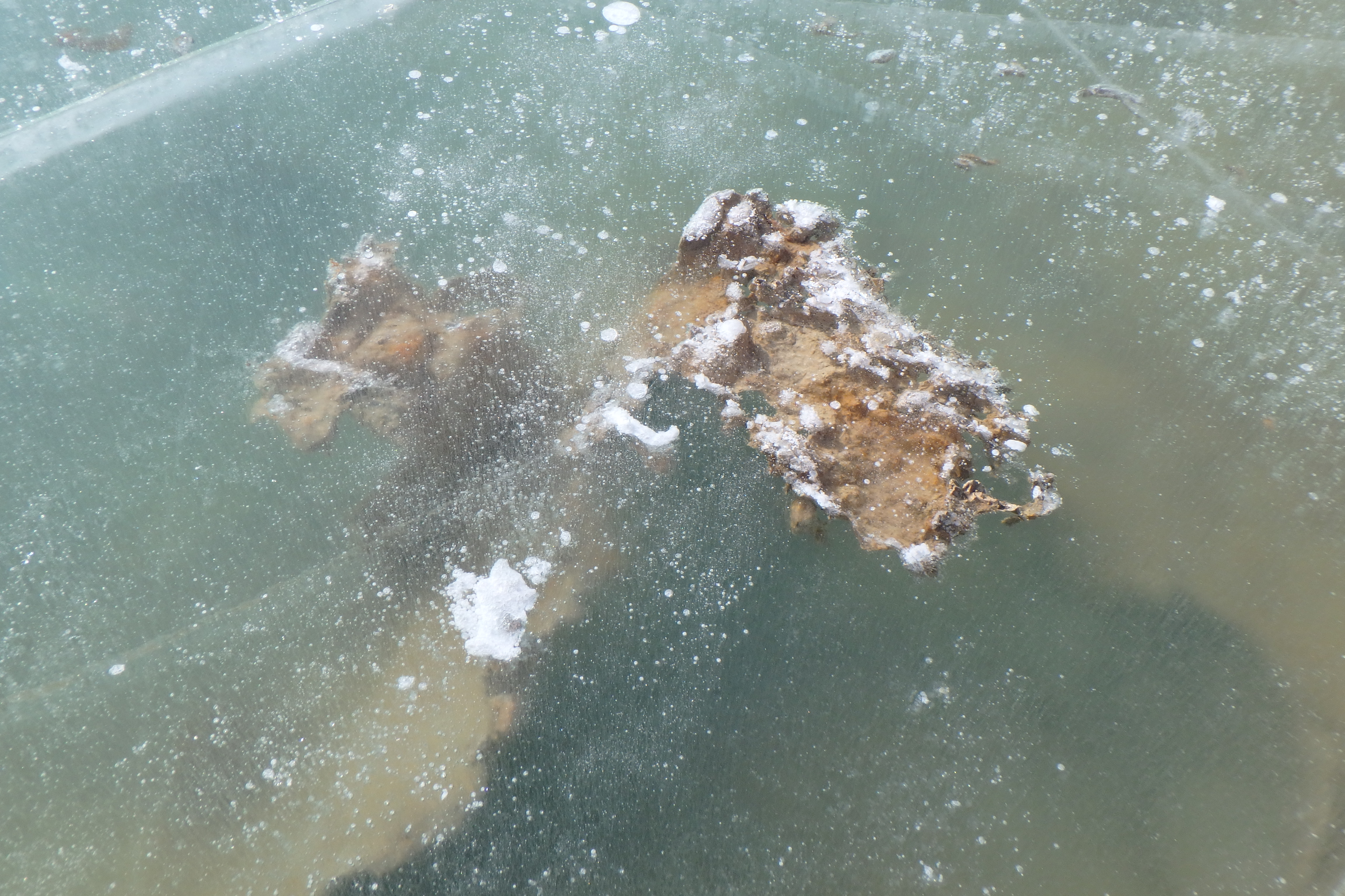 Kevin Dickerson: "Bacterial mats are one of the more abundant lifeforms found under the ice of Lake Bonney. This cyanobacteria conducts photosynthesis, providing oxygen to the rest of the lake organisms." Lake Bonney, Taylor Valley, Antarctica.