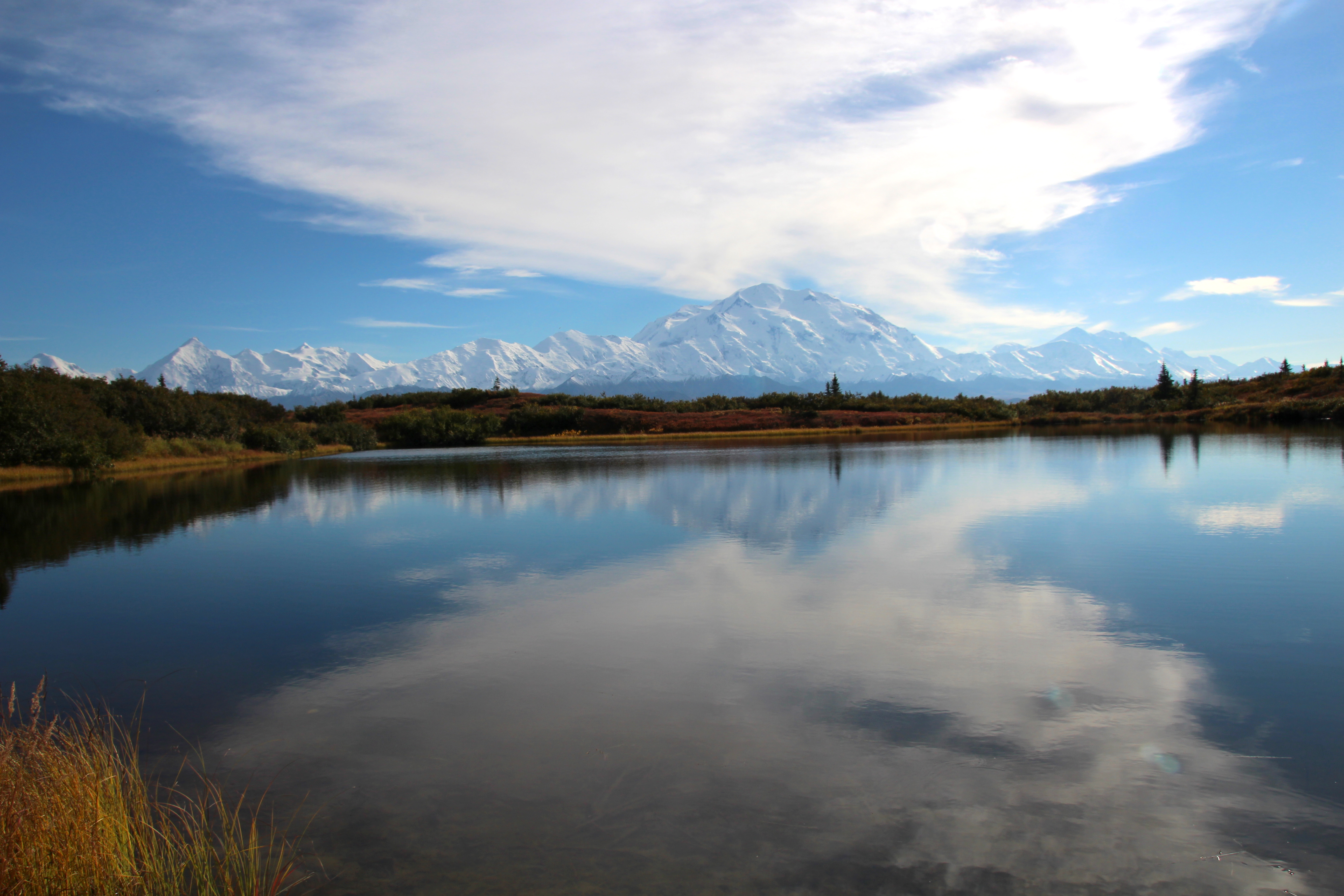 A clear view of Denali and its reflection in Reflection Pond. Denali National Park and Preserve, Alaska.