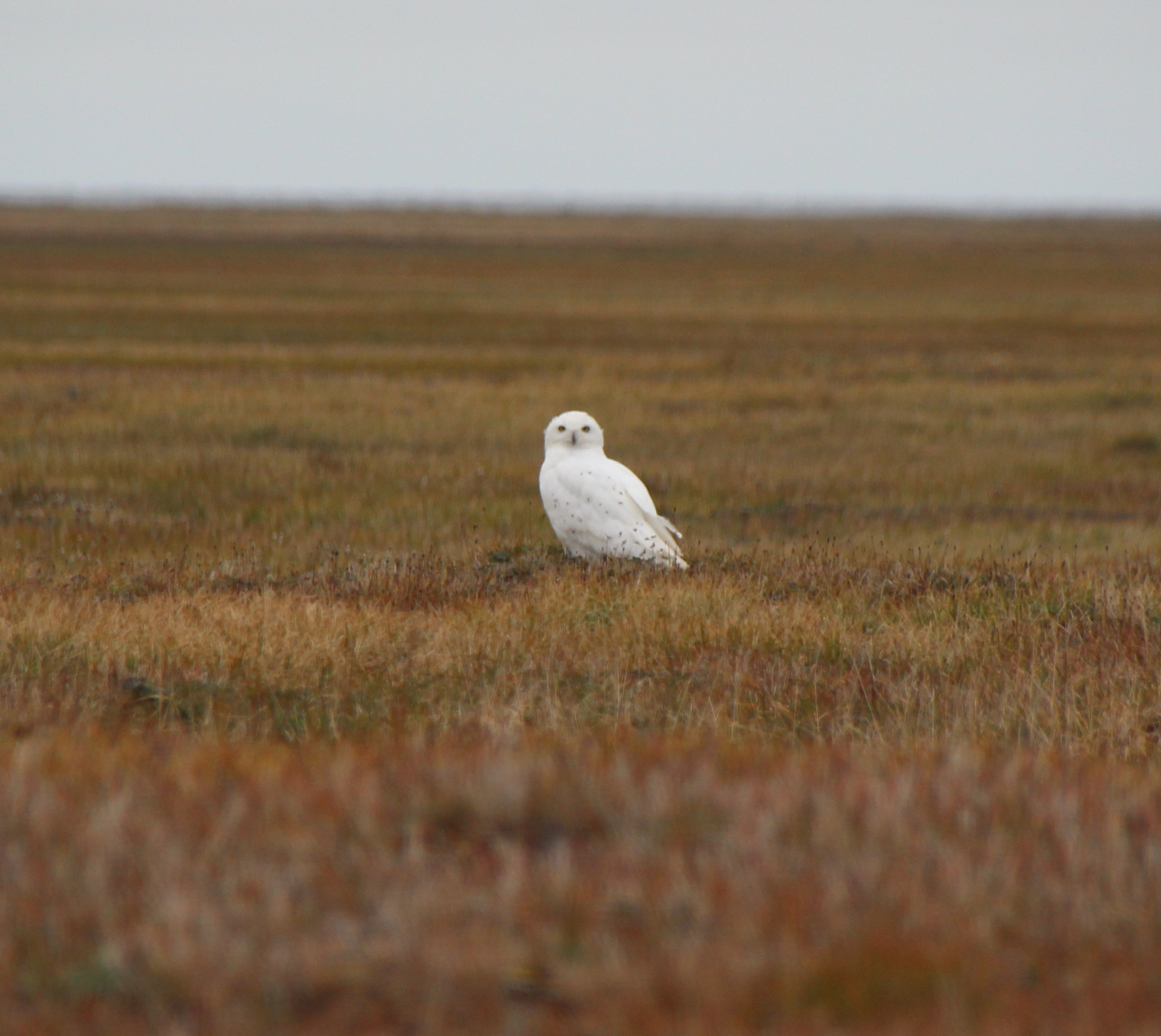 A male snowy owl near a mobile transect at the Barrow Environmental Observatory in Utqiaġvik (Barrow), Alaska.