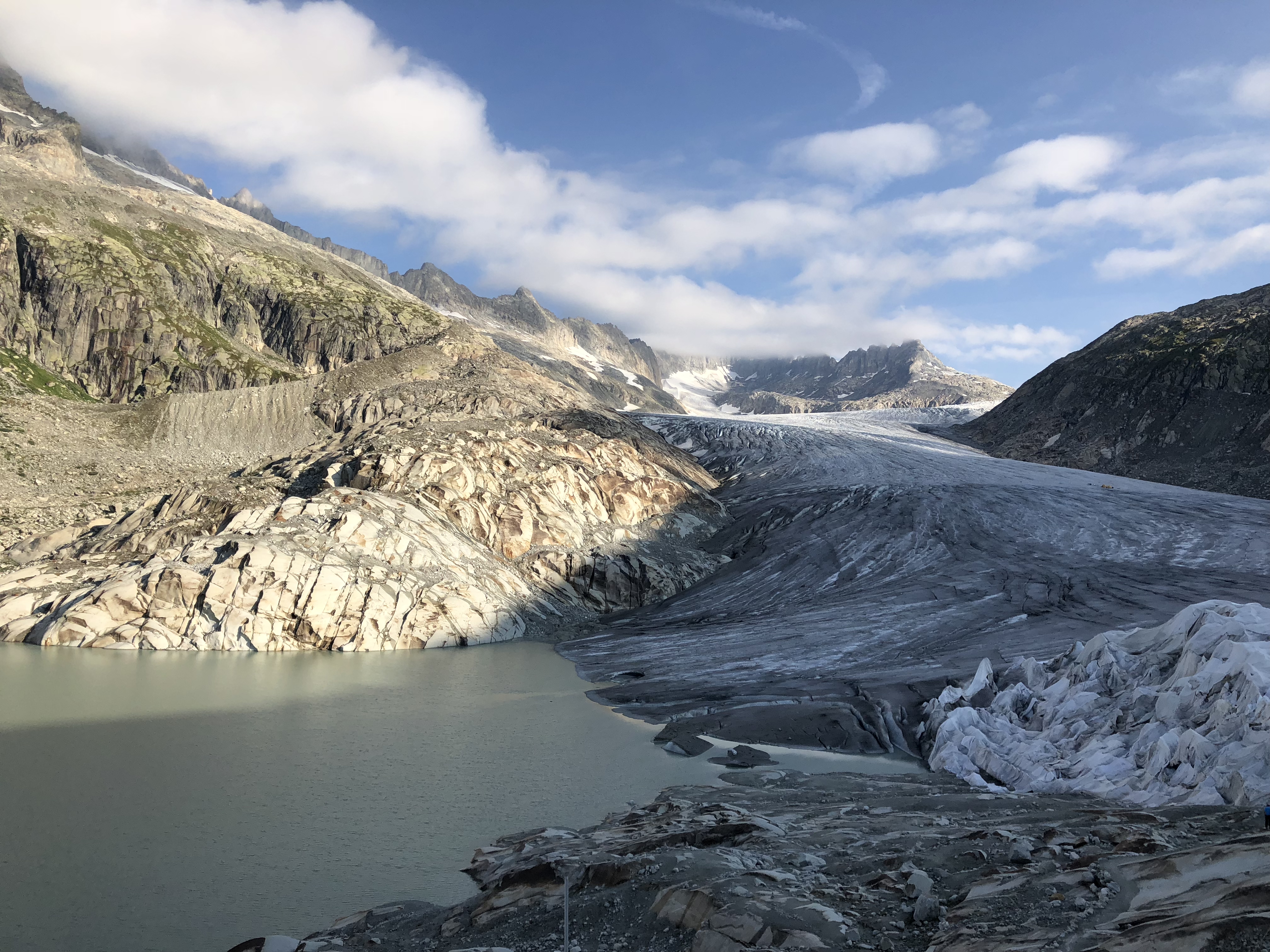 A view of the Rhône Glacier and the proglacial lake. Rhône Glacier, Switzerland.