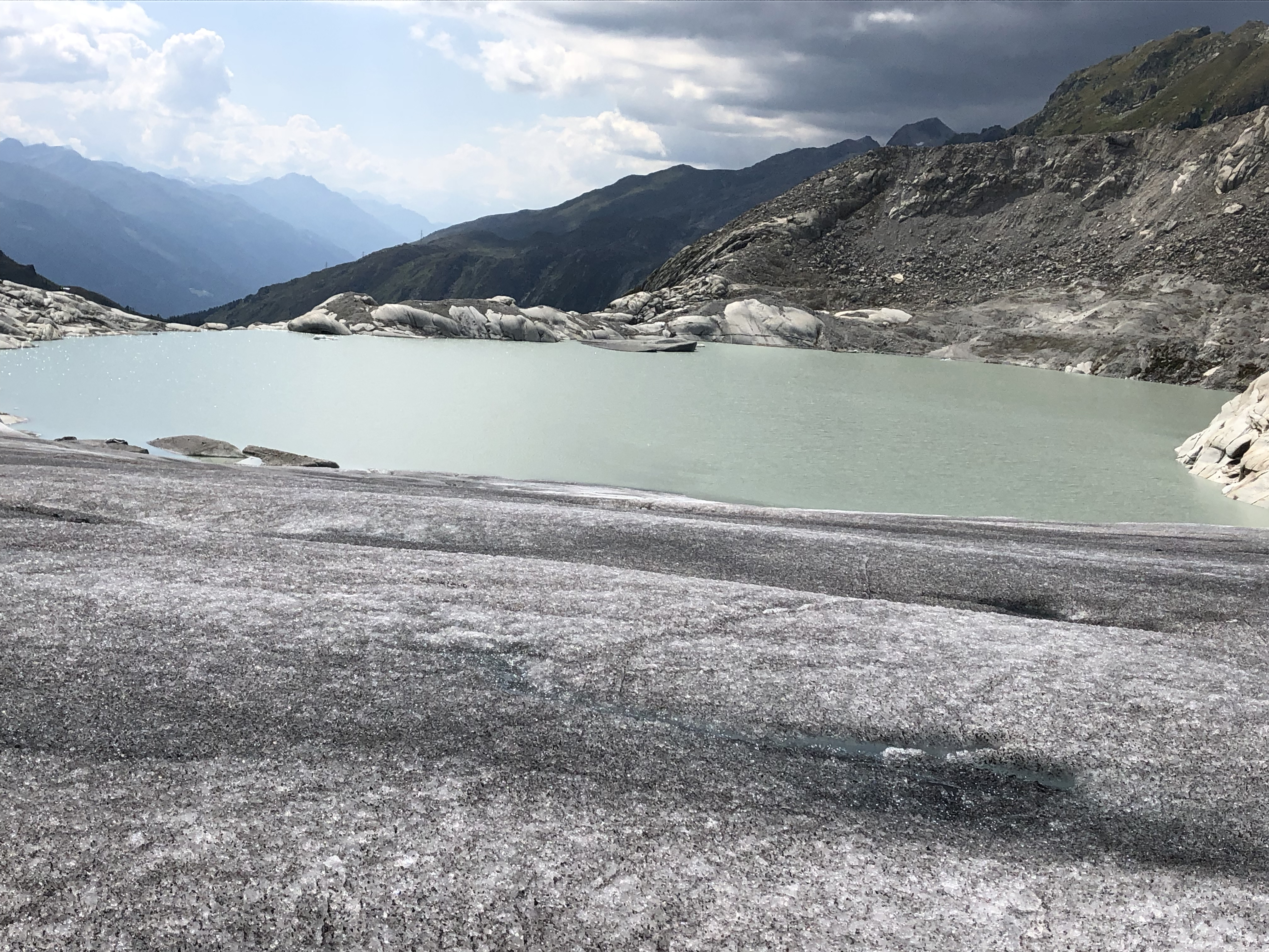 The proglacial lake in front of the Rhône Glacier. This will eventually become a tarn when the entire glacier melts. Rhône Glacier, Switzerland.