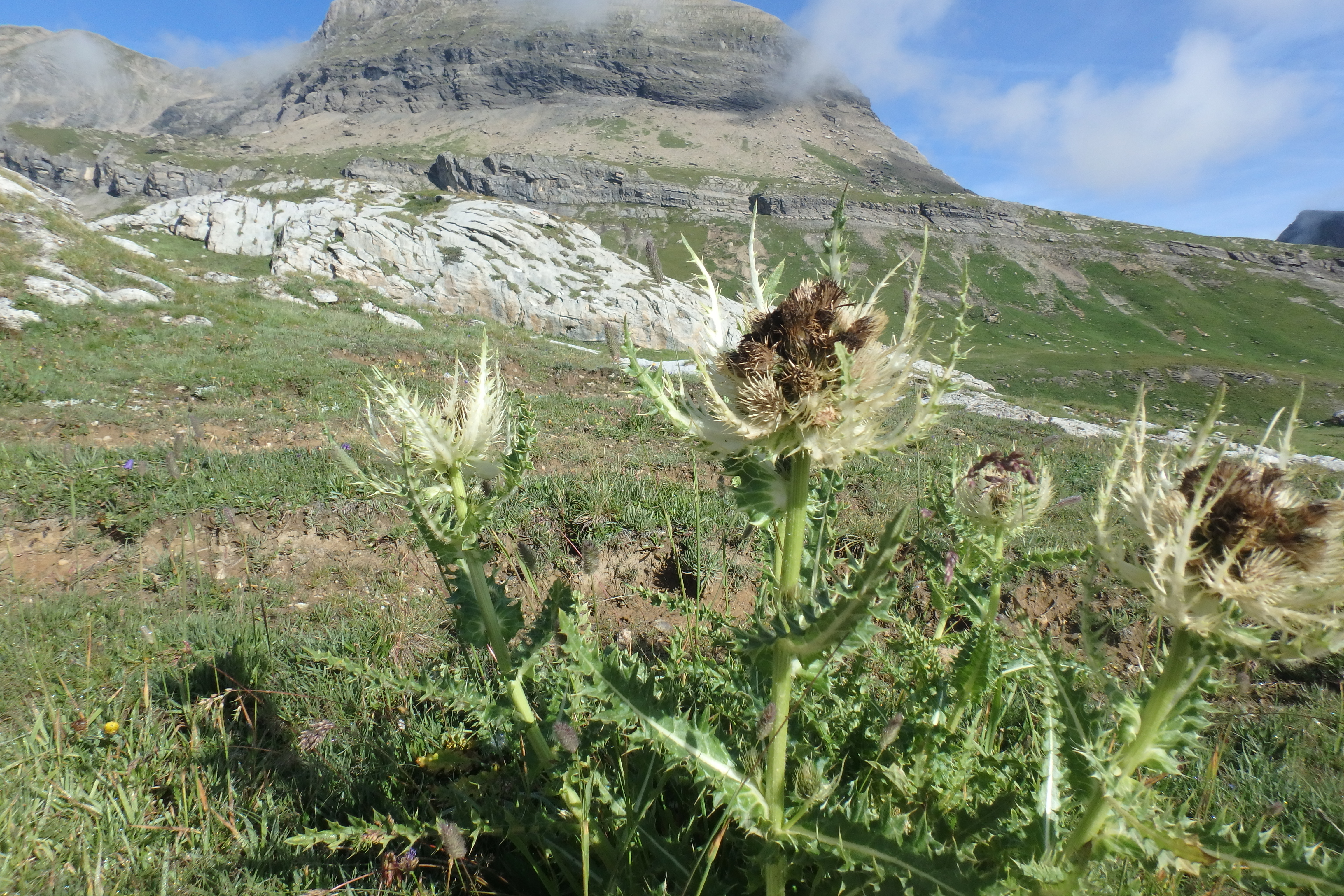 Wild thistle growing on the forefield of Tsanflueron Glacier, Switzerland.