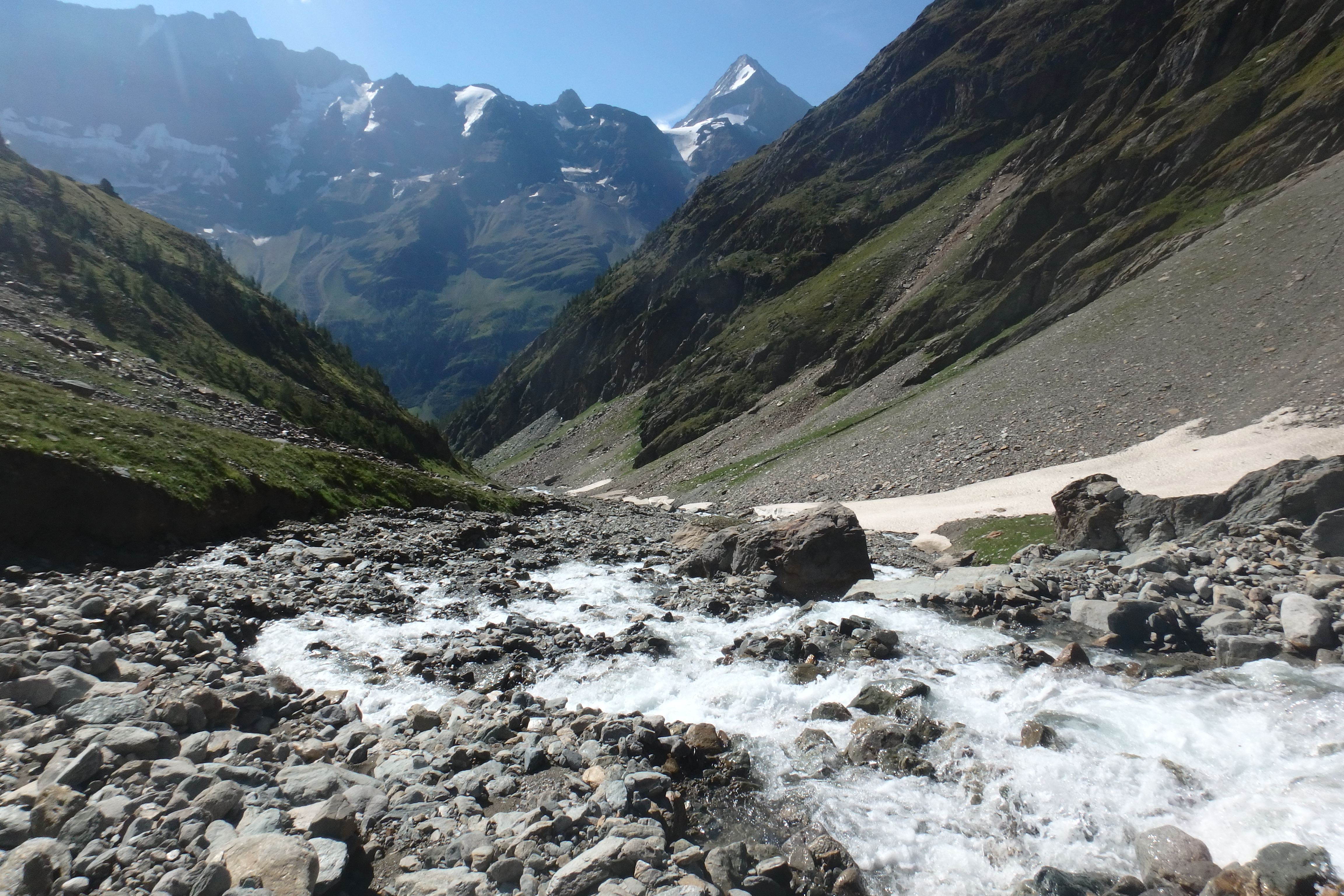 A glacial stream from the glacier meltwaters at Usser Tal Glacier, Switzerland.