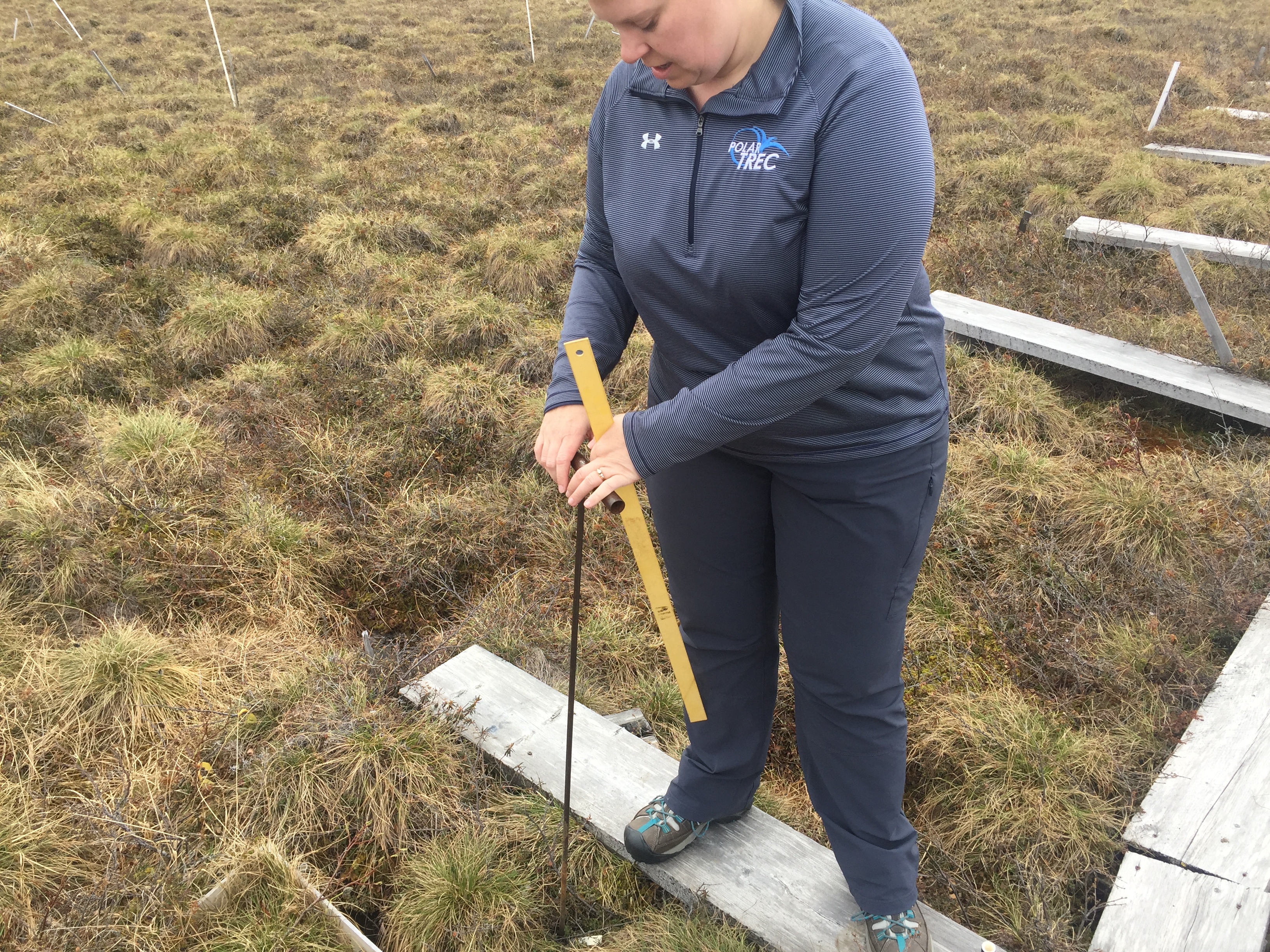 Melissa Lau measures the depth of the active layer in the phenology plots. Toolik Field Station, Alaska.