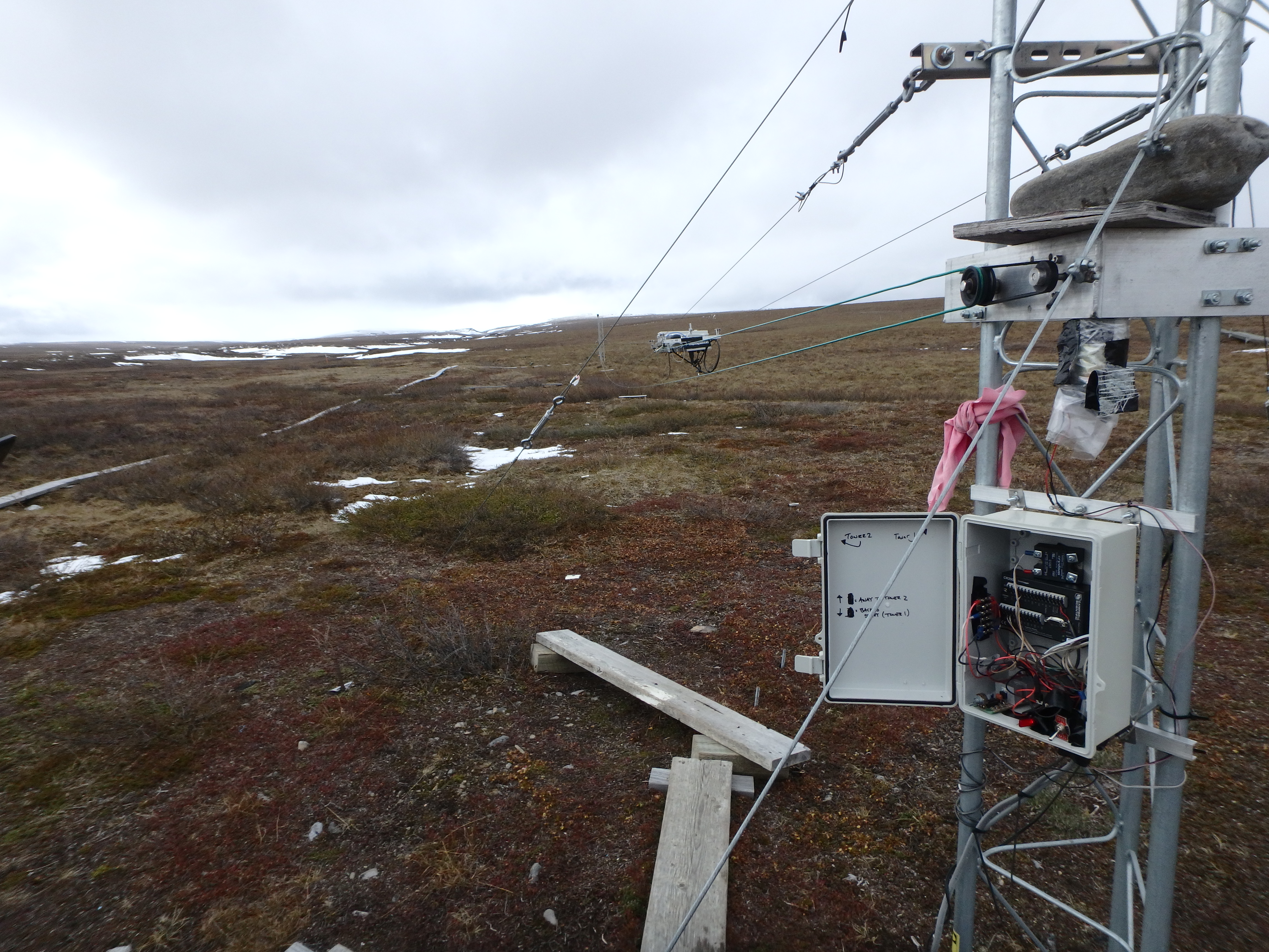 The MISP (Mobile Instrumented Senor Platform) tram goes on a test run after getting its belt on the motor replaced. Imnaviat Creek, Alaska.