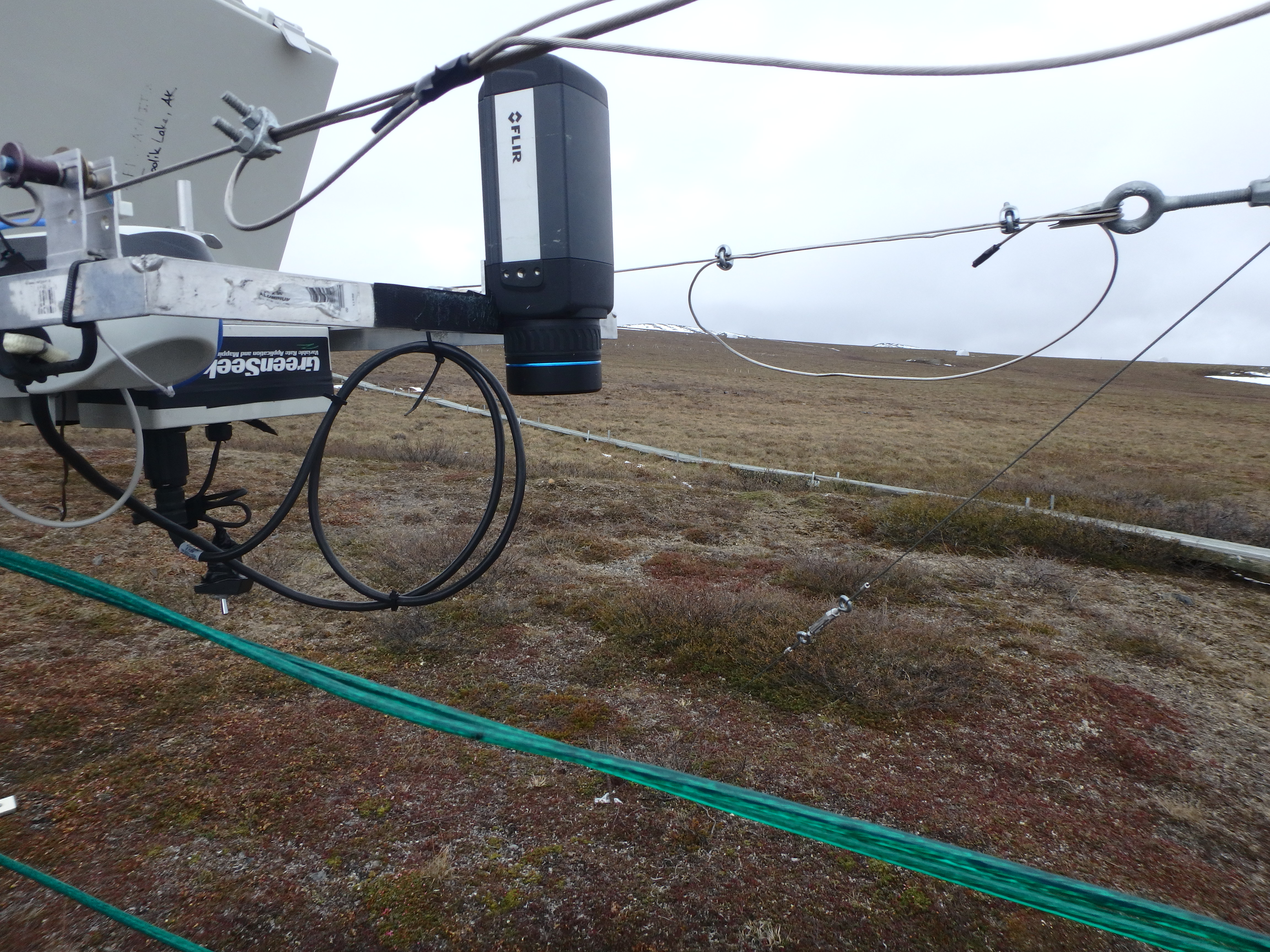The GreenSeeker and the FLIR infrared camera that are mounted to the MISP (Mobile Instrumented Senor Platform) tram. Imnaviat Creek, Alaska.