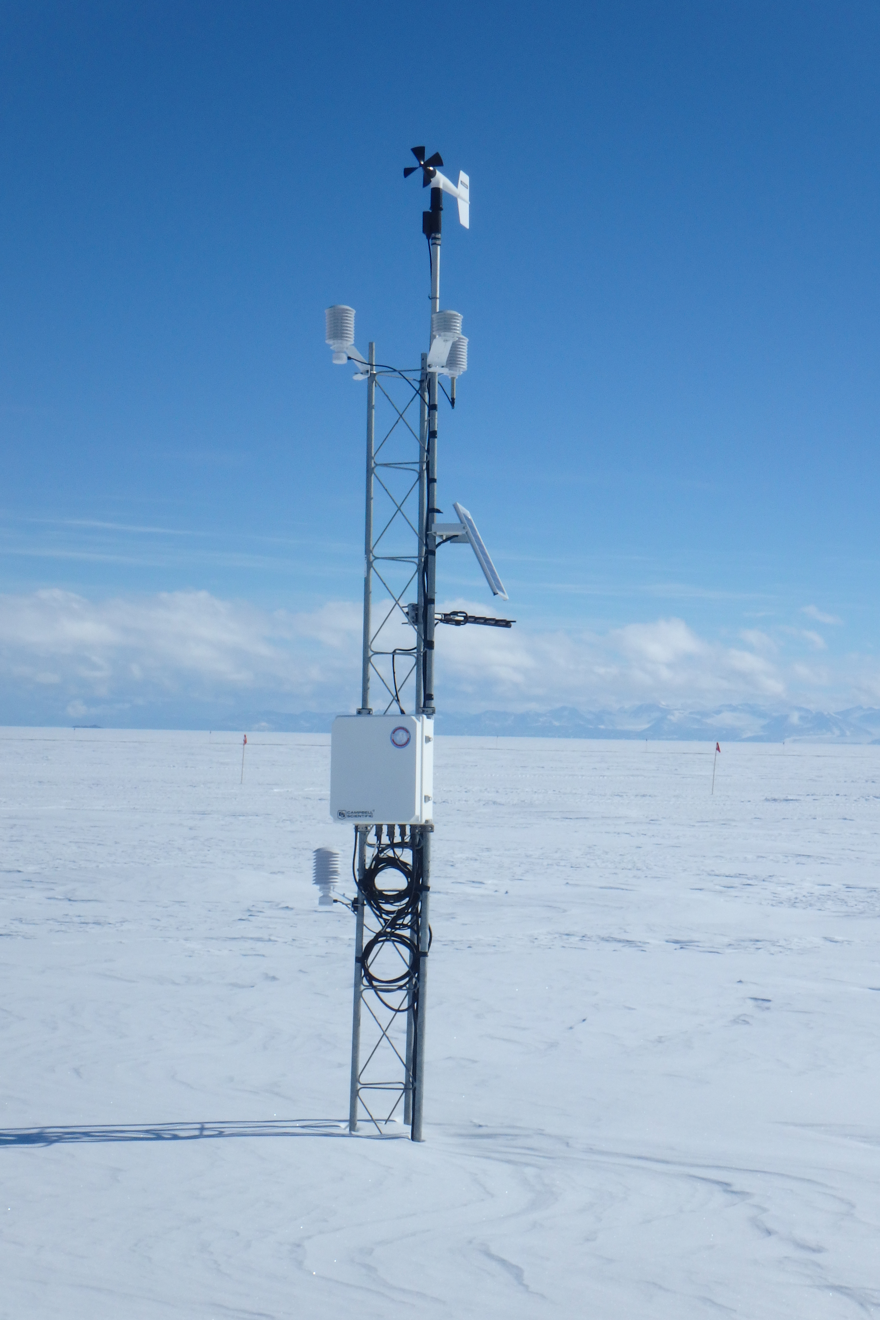 An Automatic Weather Station (AWS) at Williams Field, near McMurdo Station, Antarctica.