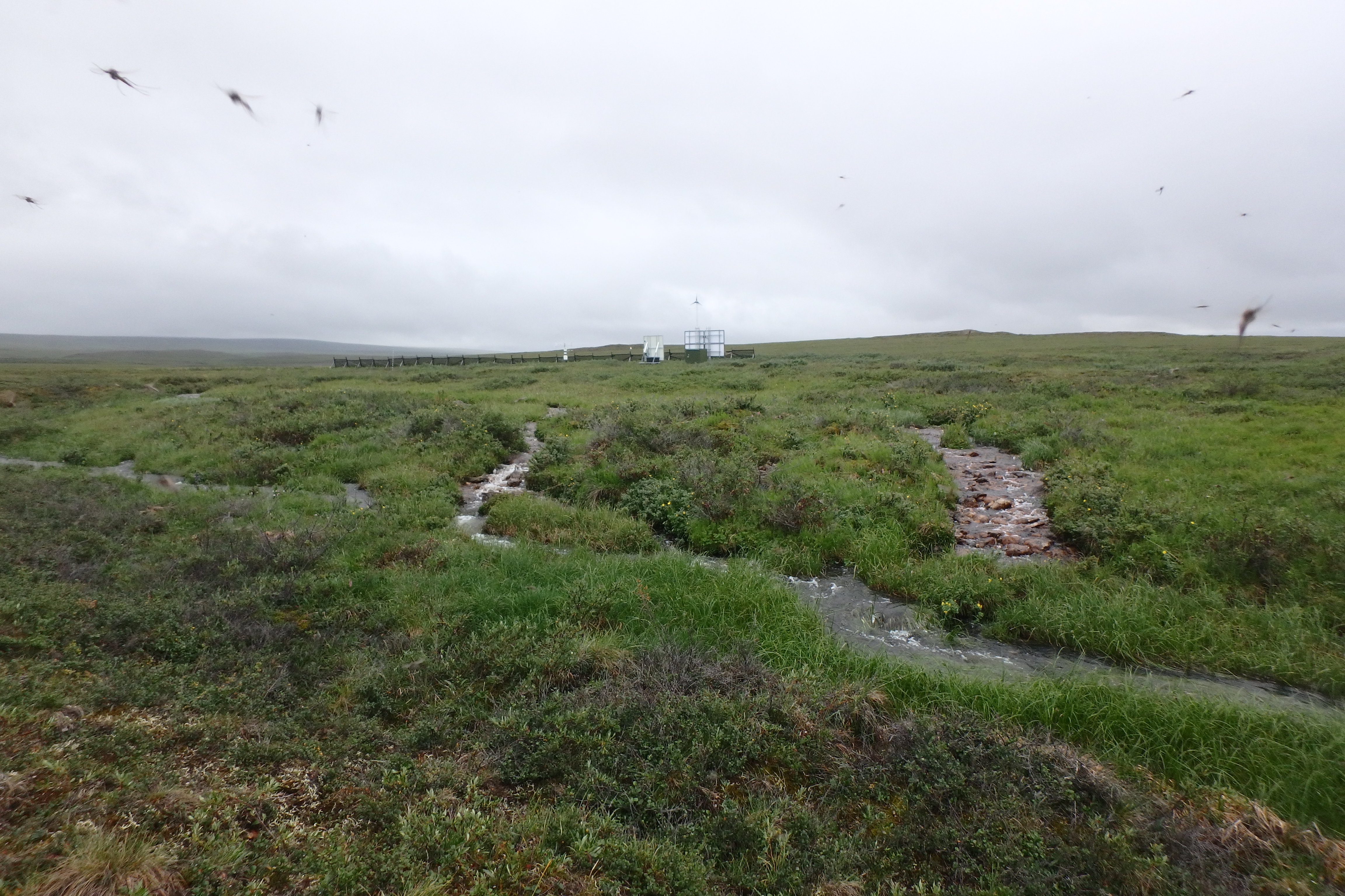 A stream running through the Riparian Snowfence field site. Toolik Field Station, Alaska.