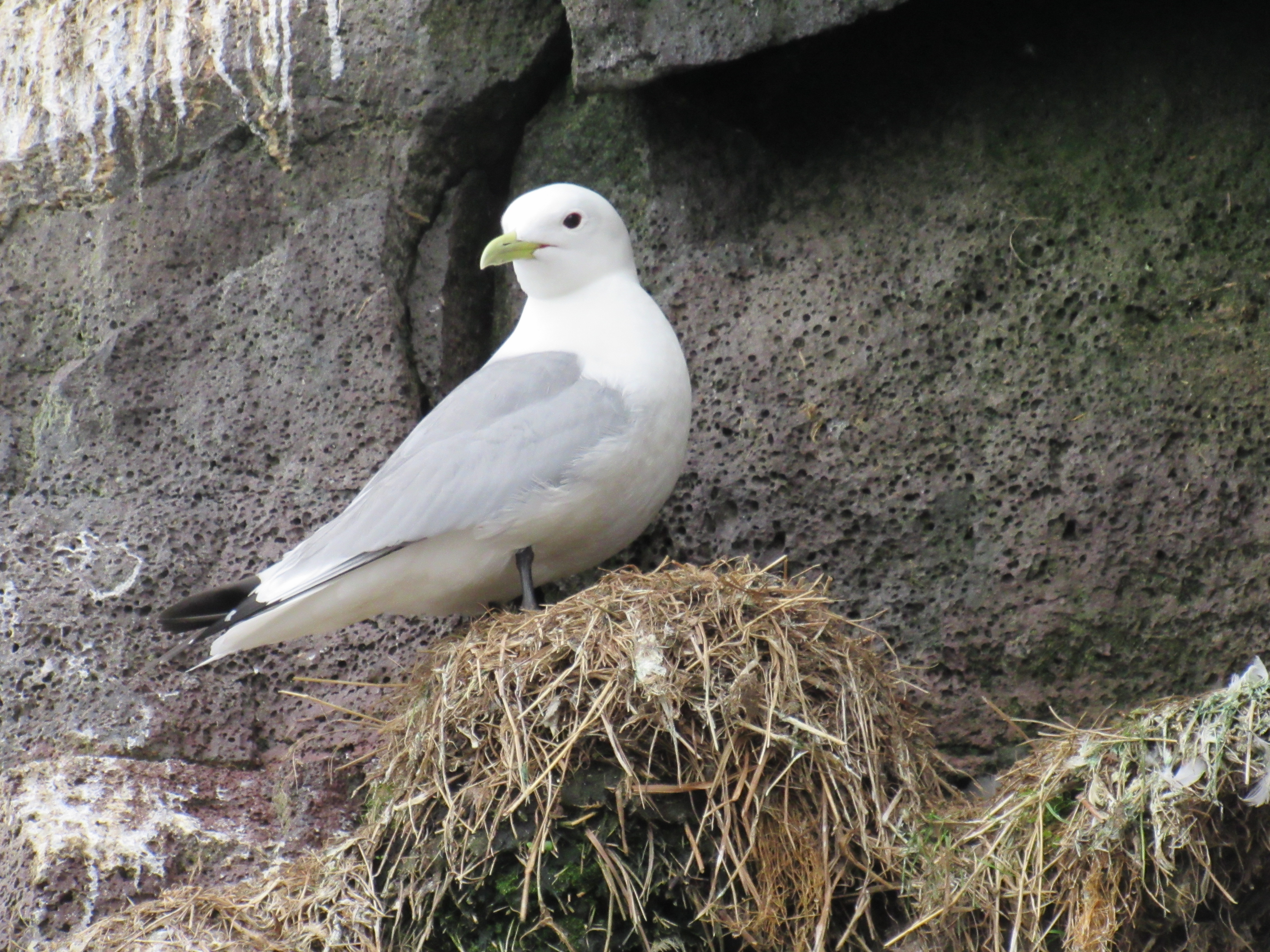 A black-legged kittiwake at its nest. Cape Myaughee, St. Lawrence Island, Alaska.