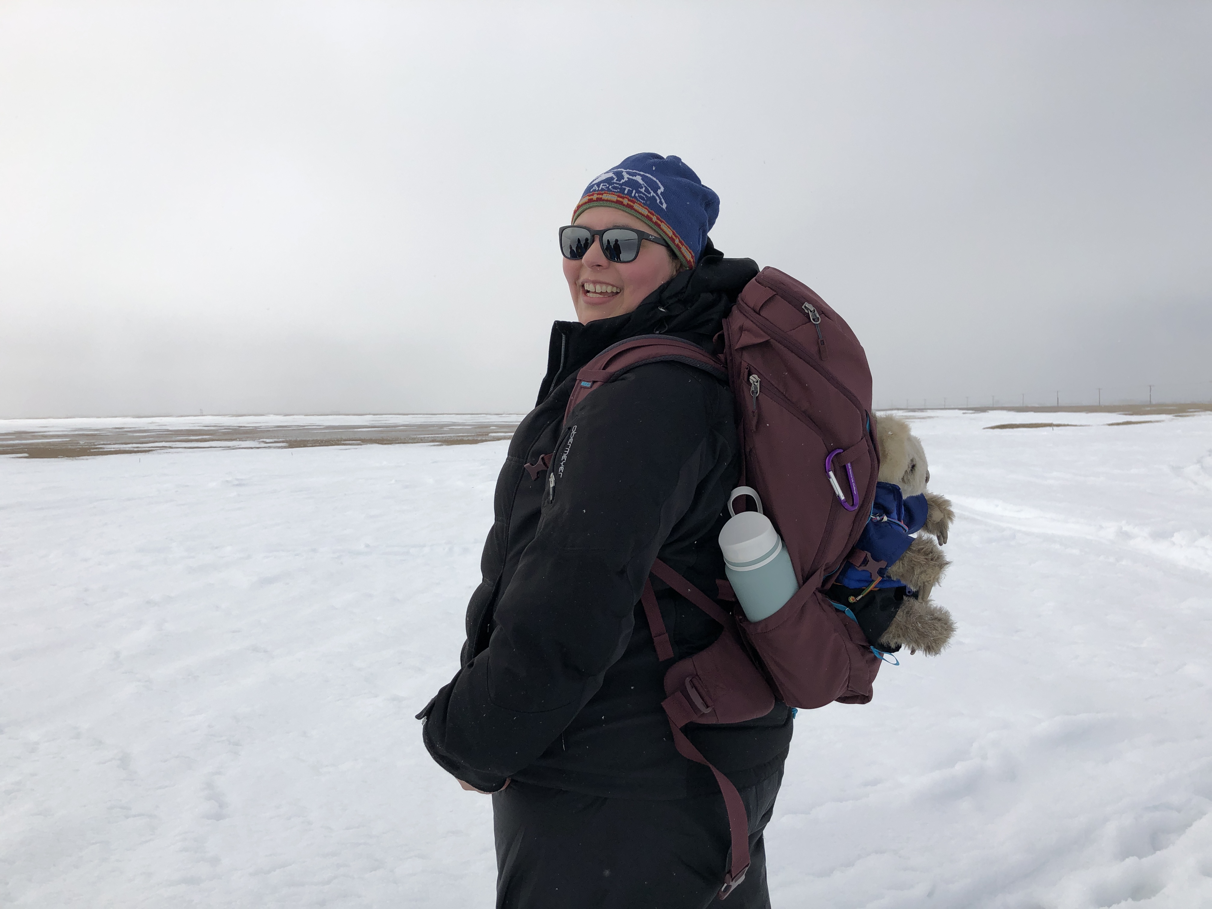 Alejandra Martinez out on the snow covered tundra. Barrow Environmental Observatory (BEO), Utqiaġvik, Alaska.