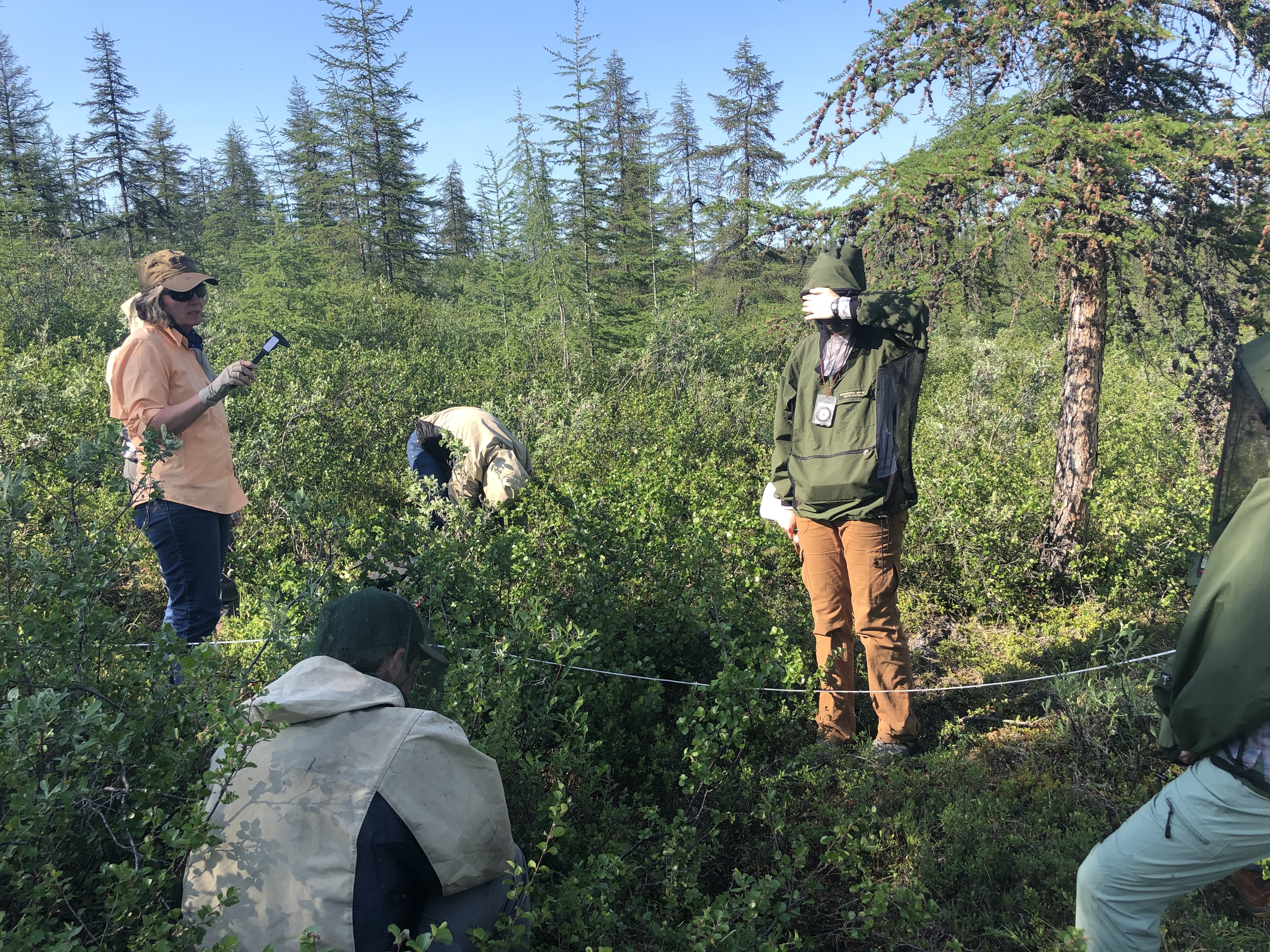 The science team gathers vegetation data along the Anyuy transect. Chersky, Russia.