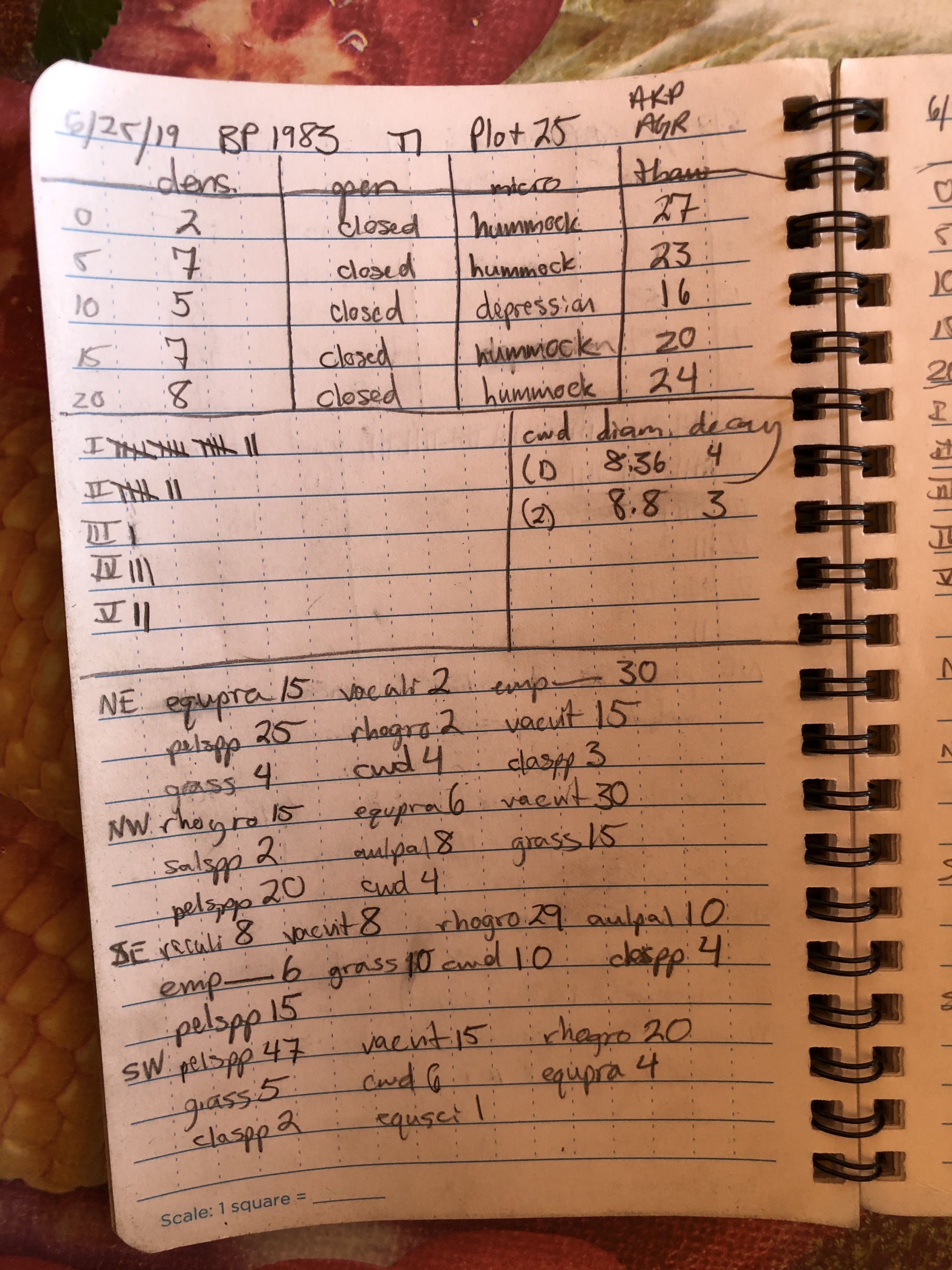 Amanda Ruland: "Field notebook for 'Broken Propellor' burn site transect 1, plot 25. Chersky, Russia.