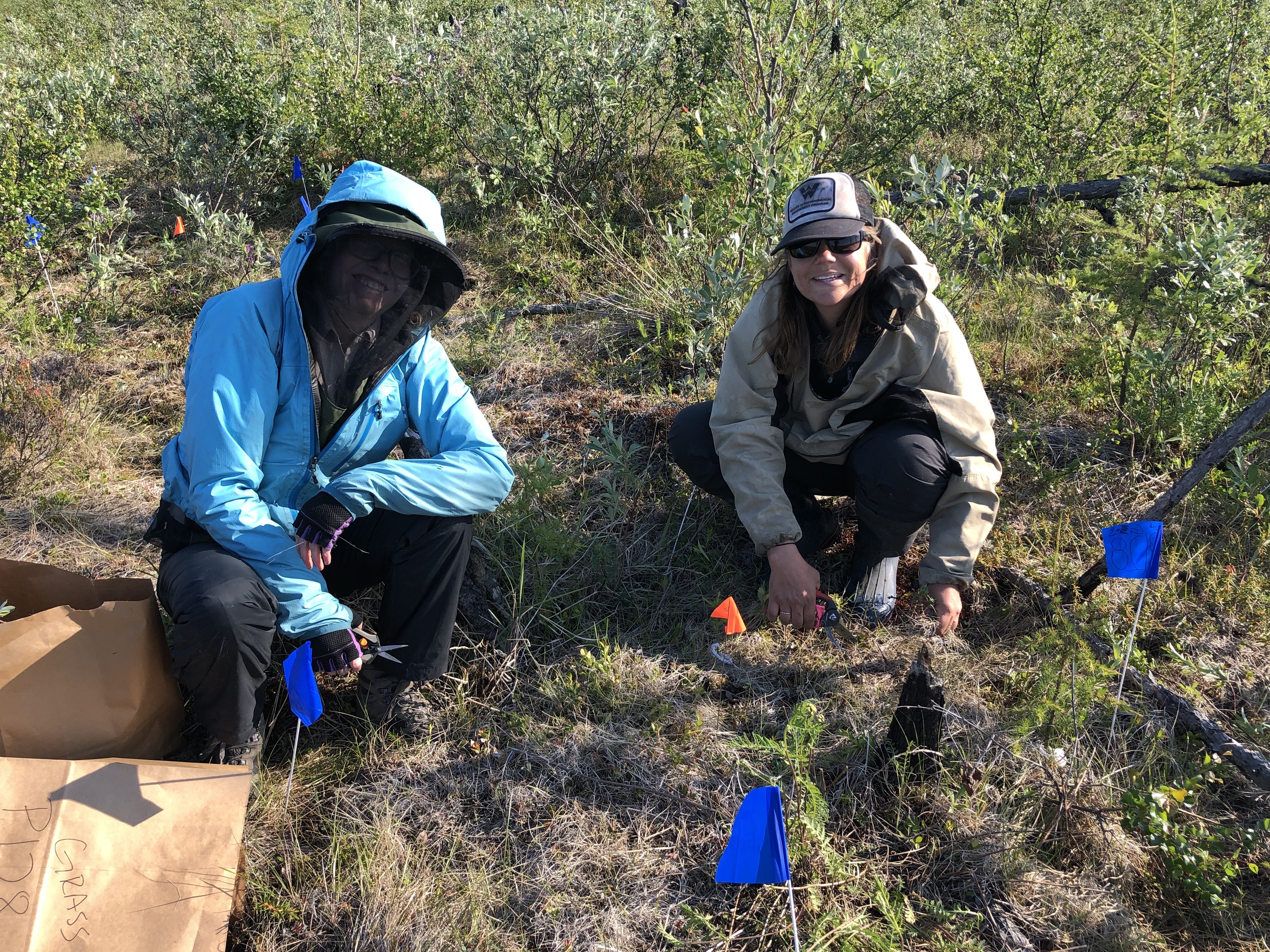 Dr. Jennie DeMarco and Jill Young remove vegetation for a competition experiment. Chersky, Russia.
