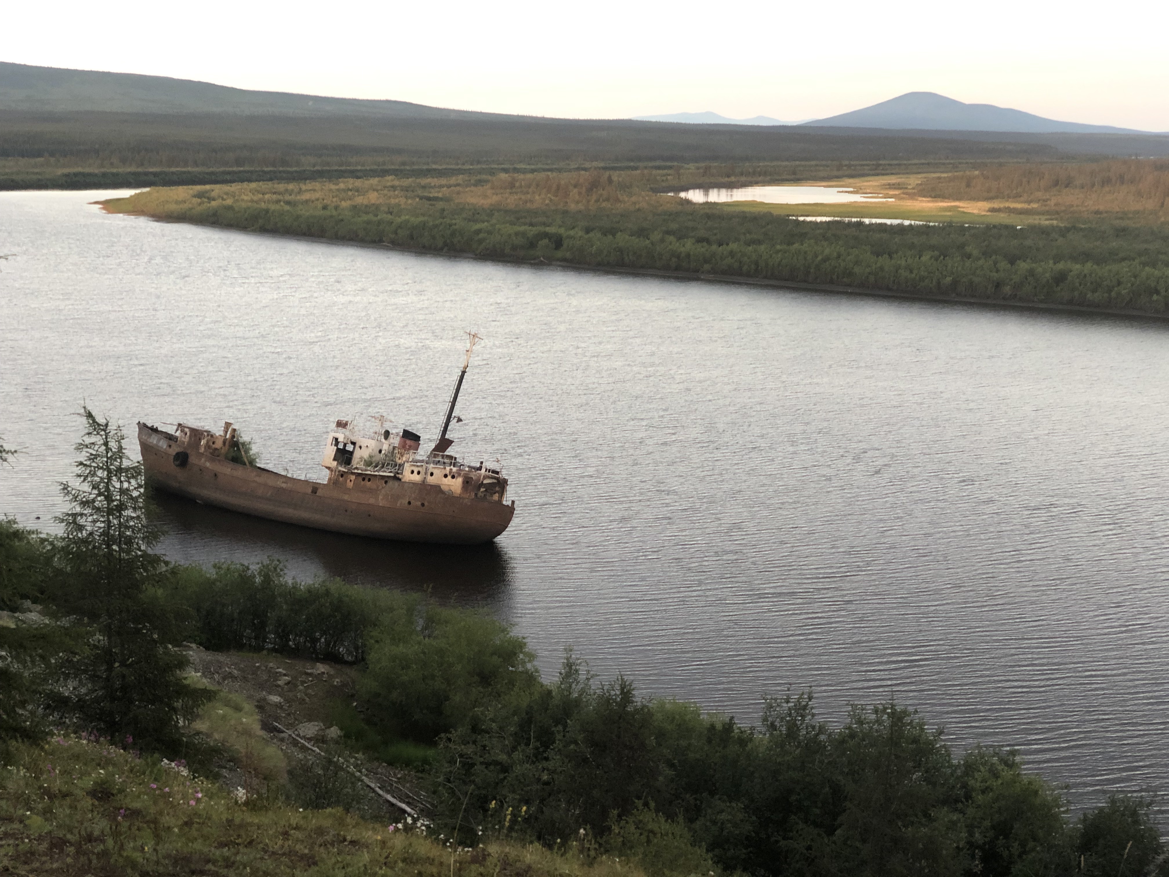 An abandoned ship rests on the Anyuy River floor. Chersky, Russia.