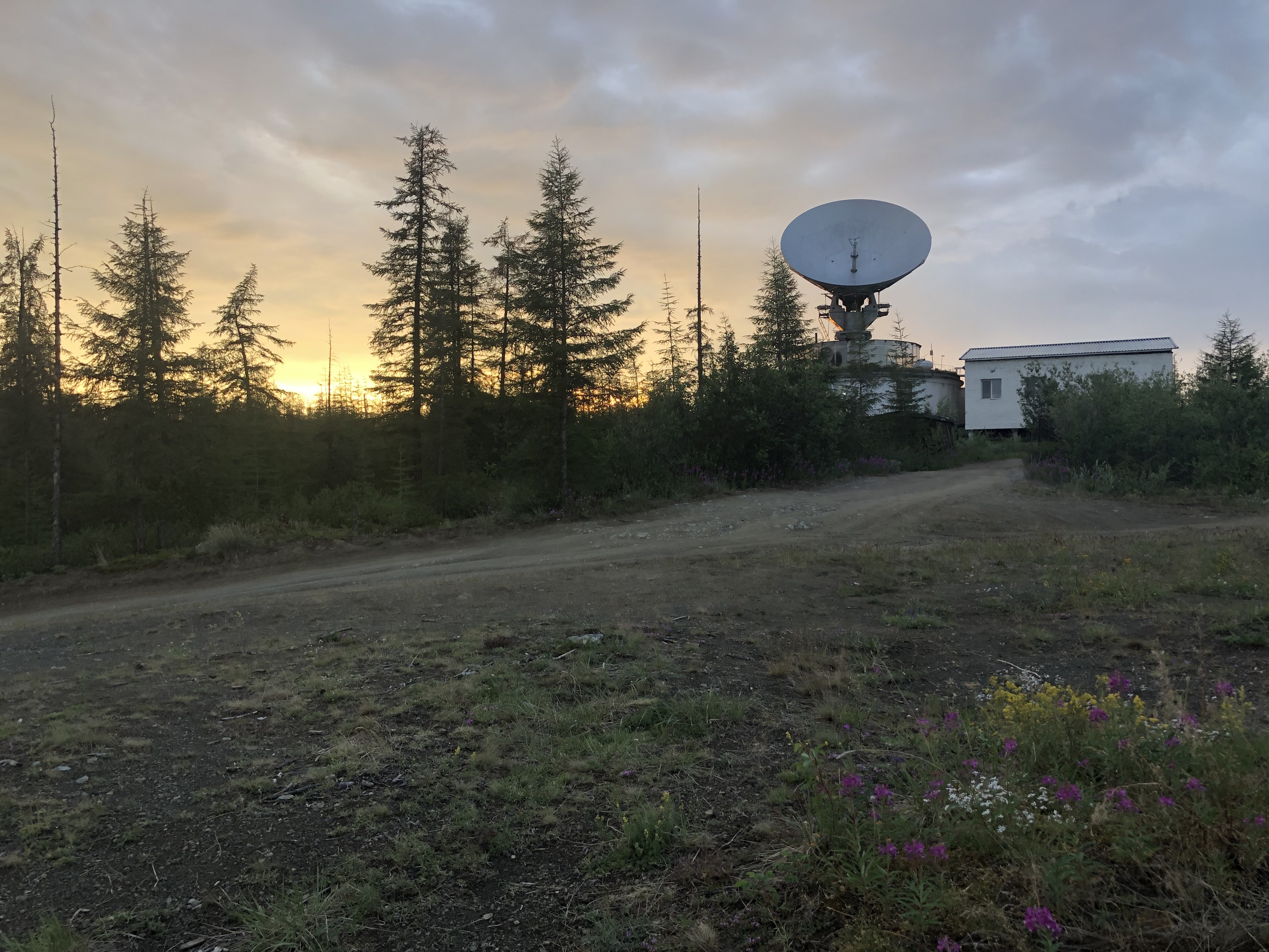 The early morning sun rises behind Orbita. Chersky, Russia.