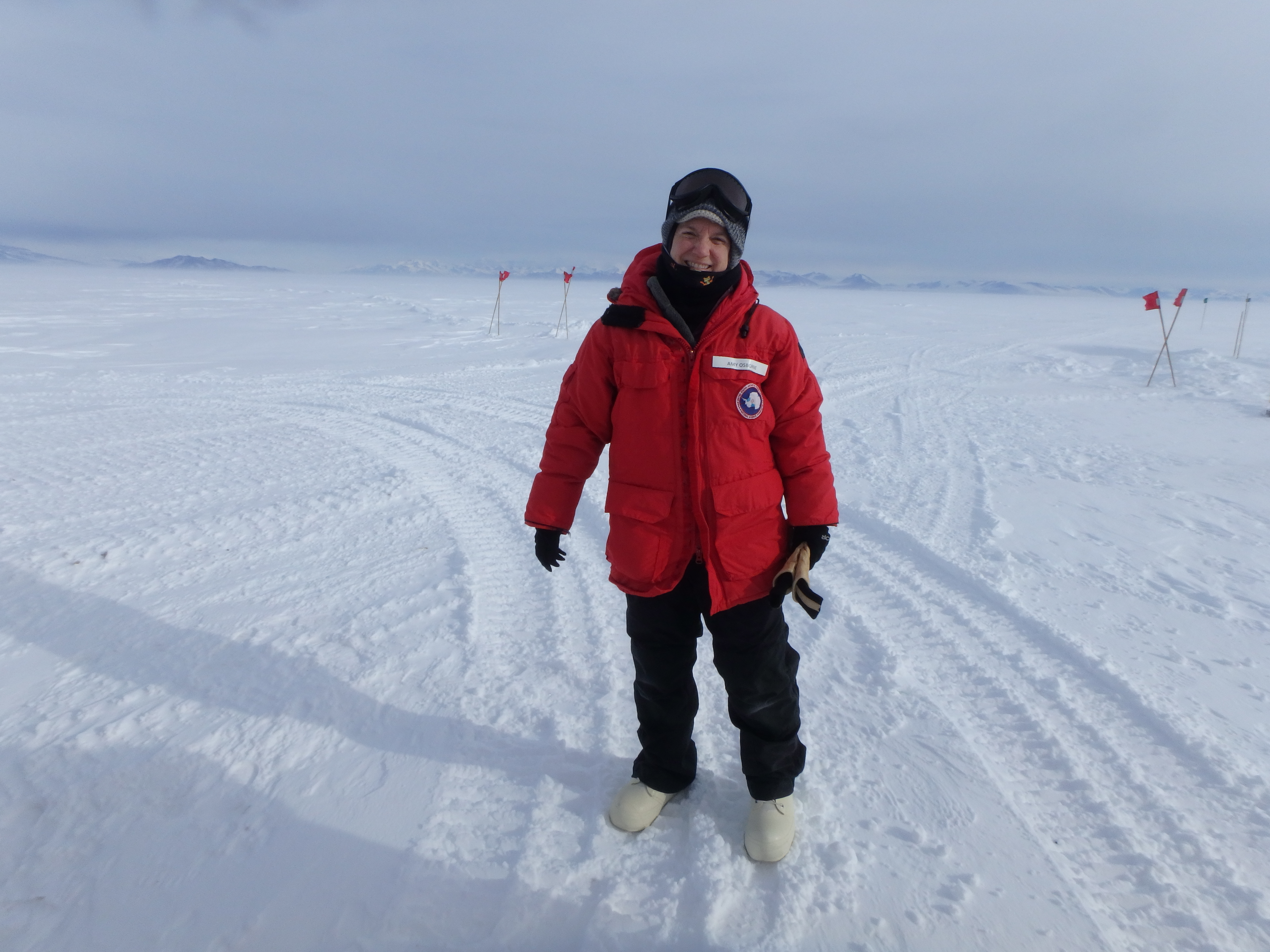 Amy Osborne sets foot on the sea ice for the first time. McMurdo Station, Antarctica.