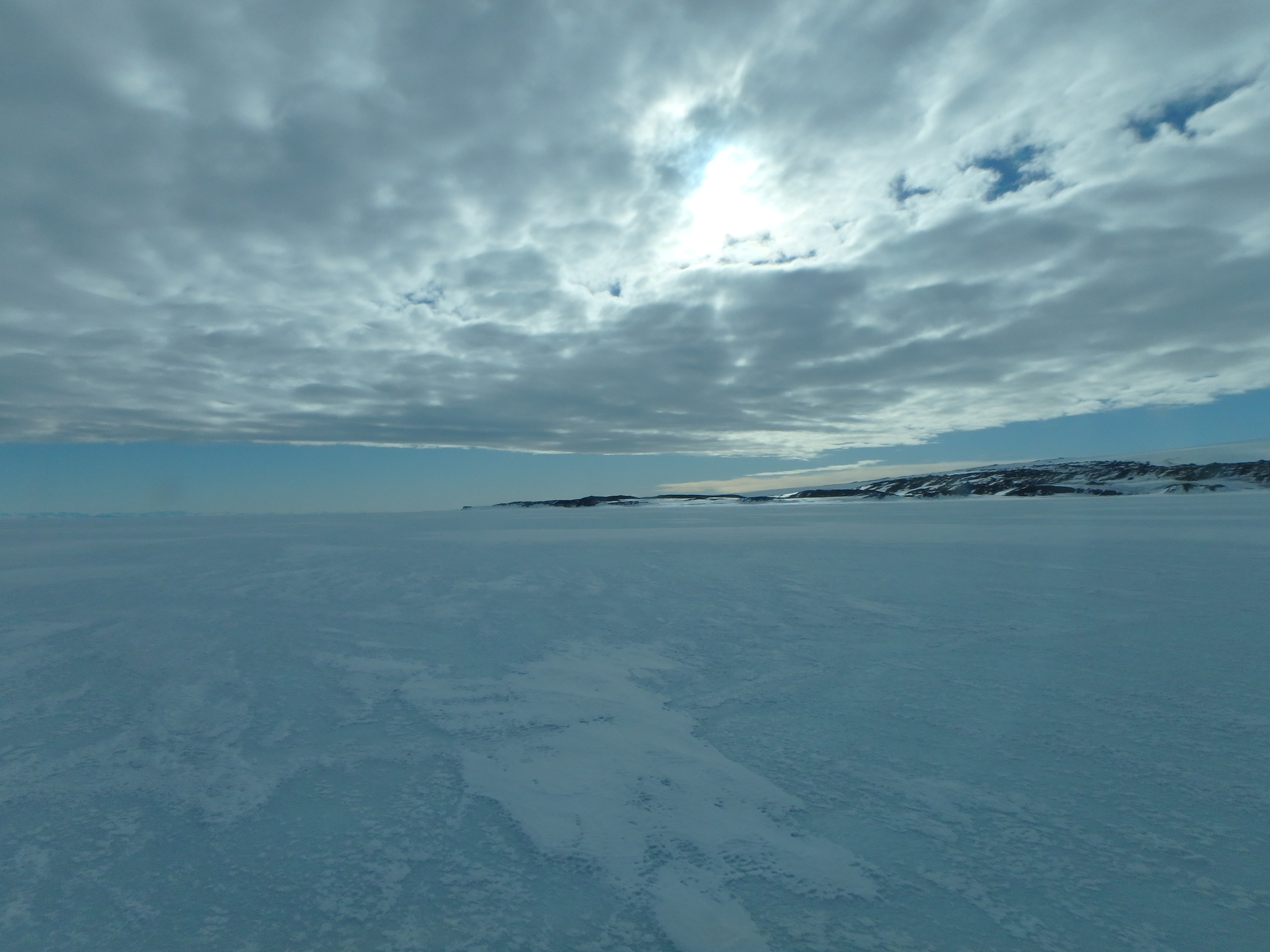 A view across frozen McMurdo Sound near Cape Evans, Antarctica.