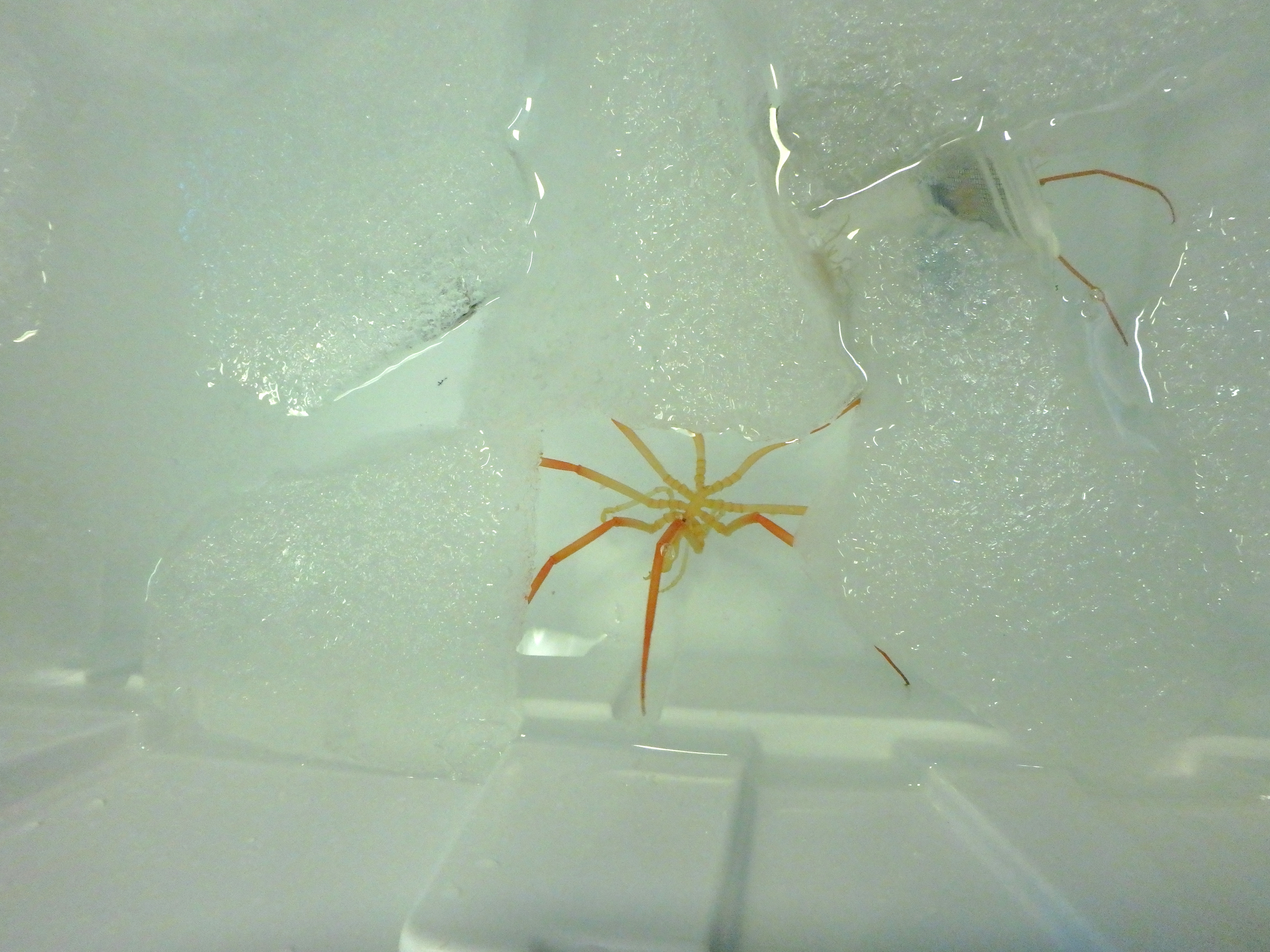 A sea spider genus Colossendeis at the Crary Lab Aquarium, McMurdo Station, Antarctica.