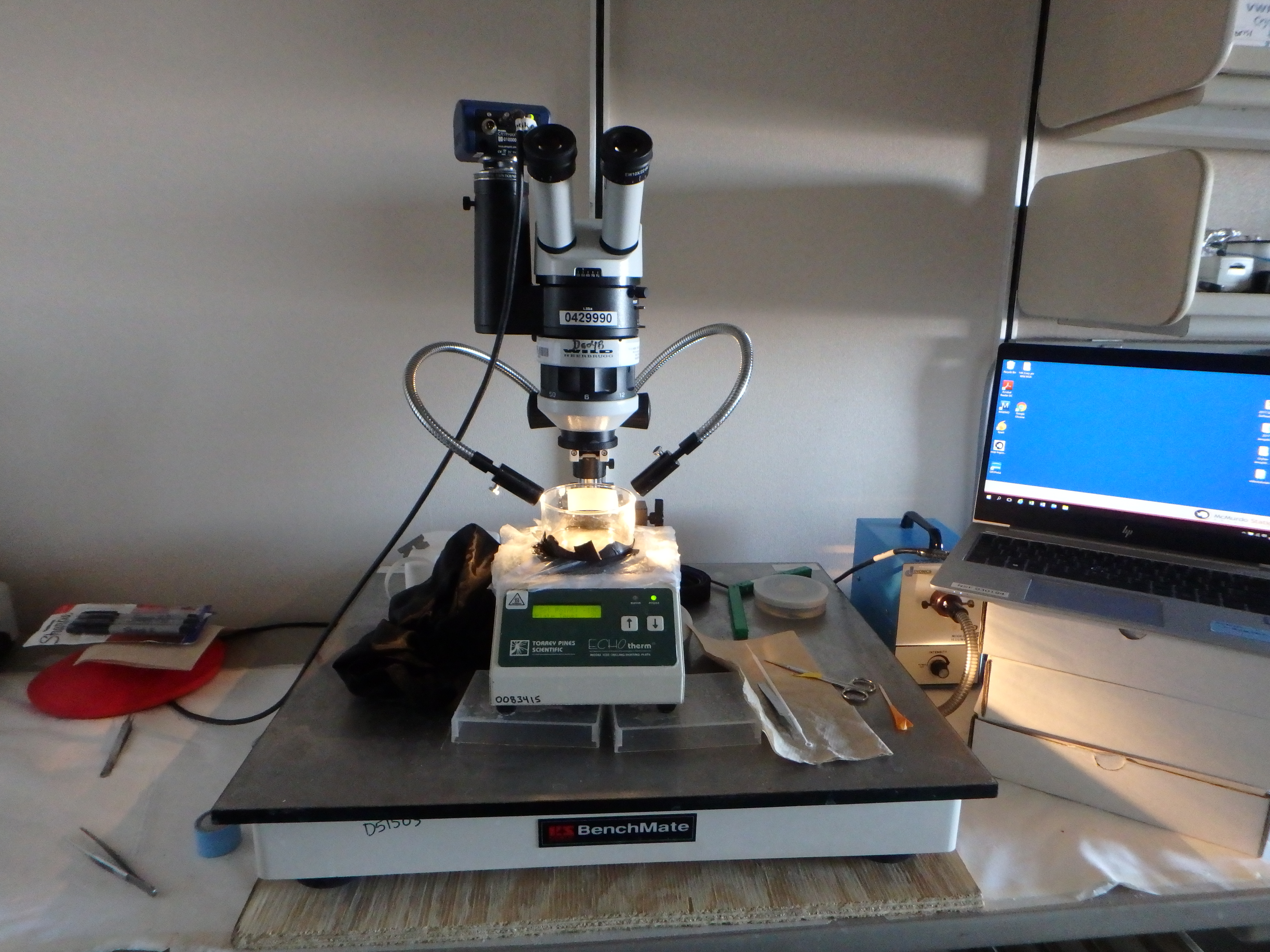 This microscope has a cooling block to keep the sea water cold for the sealife that live in the samples. Crary Lab, McMurdo Station, Antarctica.