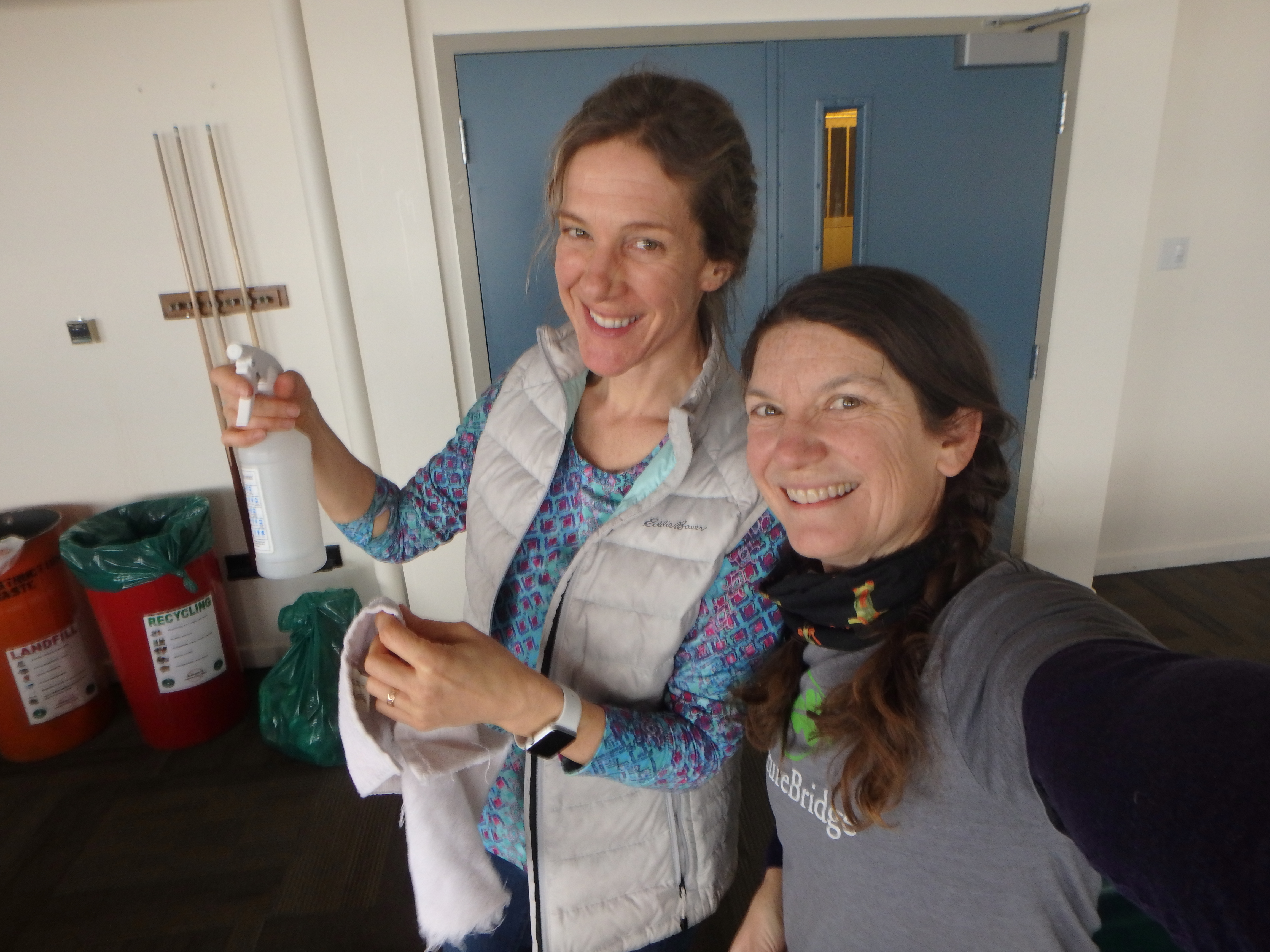The two Amys, Dr. Amy Moran and Amy Osborne, clean the lounges in the dorms. Living in the dorms requires occasionally filling in the role of "house mouse" and doing the cleaning. McMurdo Station, Antarctica.