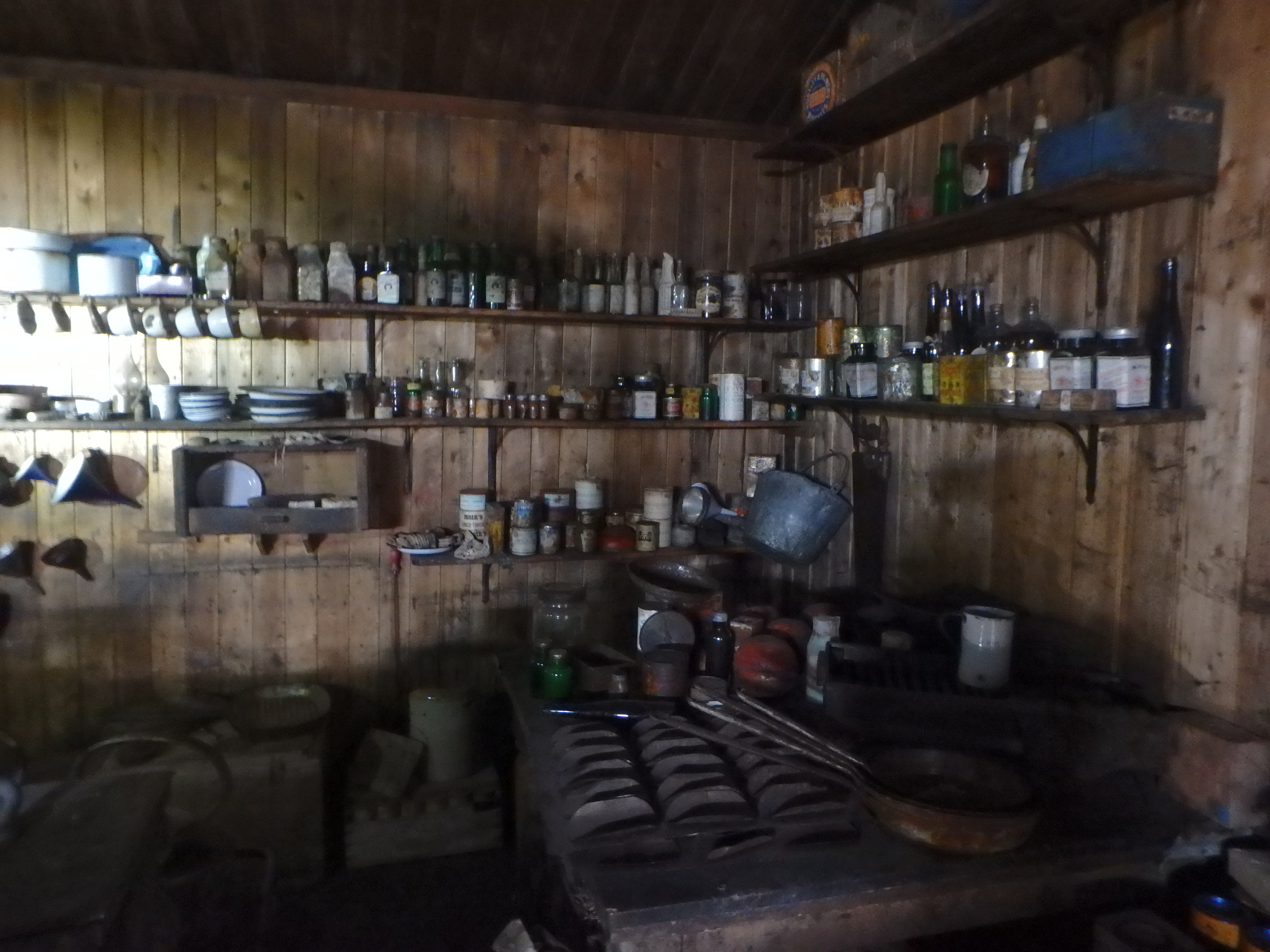 This is part of the kitchen in Robert Falcon Scott's Terra Nova Expedition hut (1910-1913). Cape Evans, Antarctica.