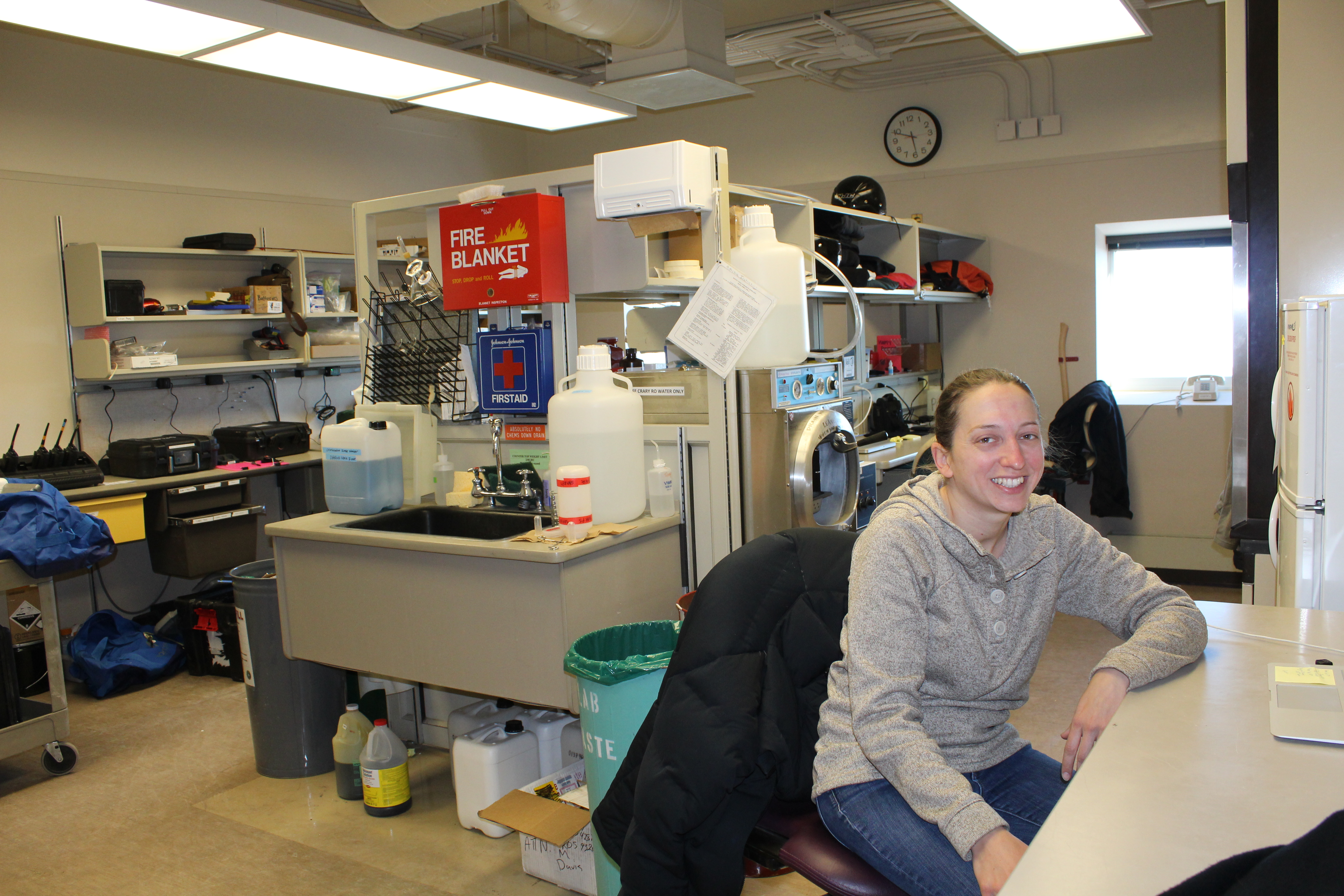 Bridget Ward sits at her desk in Crary Lab. McMurdo Station, Antarctica.