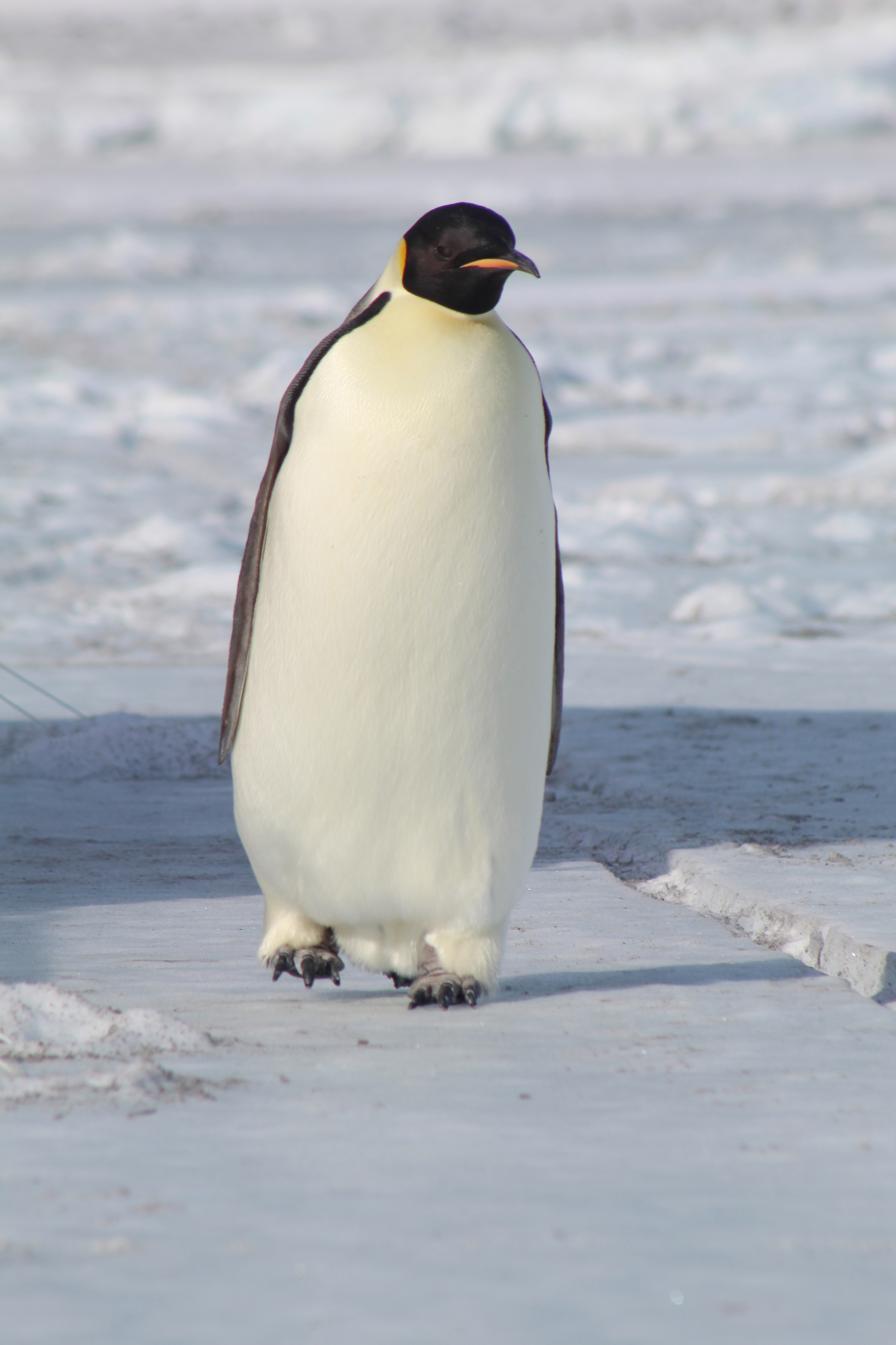 An Emperor penguin waddling around at Big Razorback, Antarctica.